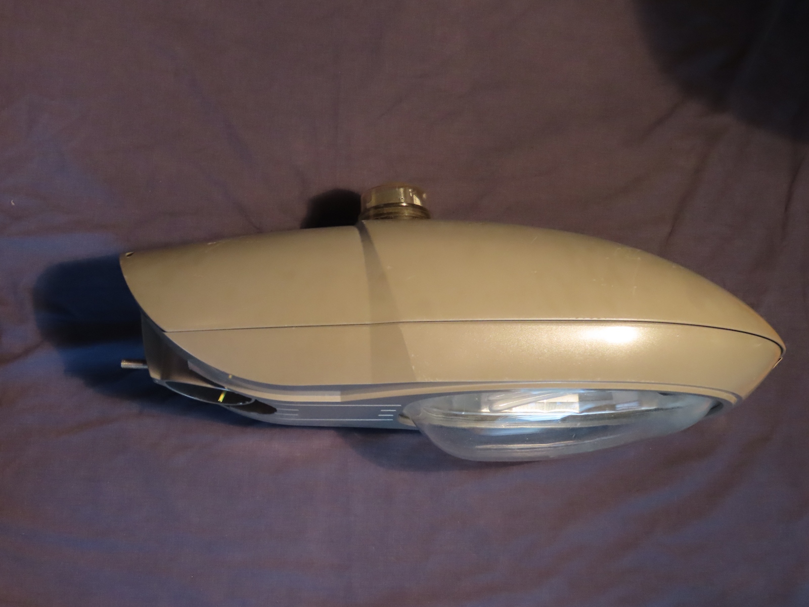 With thanks to Leo Conway for donating this lantern to the Collection. Following the takeover of Industria by fellow Dutch manufacturing behemoth Philips, along with the Spanish firm Indal, the former product lines passed to the new owner, with the Arc lantern remaining in production for a time, until LED offerings (including the also-absorbed Stela and Luma ranges, as well as Philips' own range) sounded the death knell for this once-popular roadway lantern. The original location of this lantern is unknown as it was purchased through eBay.