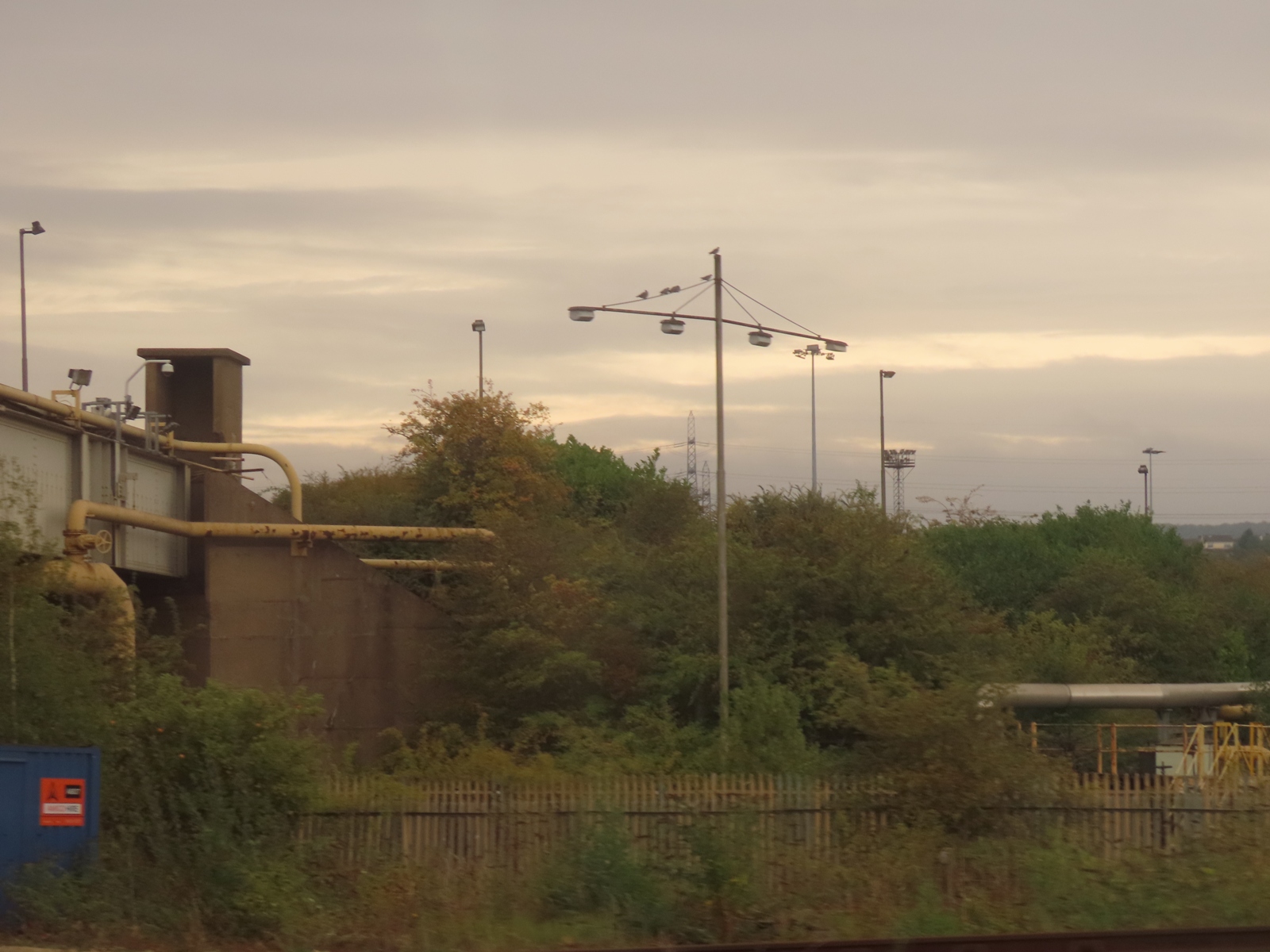 Only visible to members of the public from a passing train is this curious arrangement featuring four lanterns (possibly, AEI Ambers); the end two being side-entry, and the other two being top-entry. All four also employ a cut-off bowl. The approximate position of this installation is shown on this map. The adjacent bridge is private, and while I did contact the company to ask for permission to photograph the installation from it, as is too often the case, to date, no response has been received.