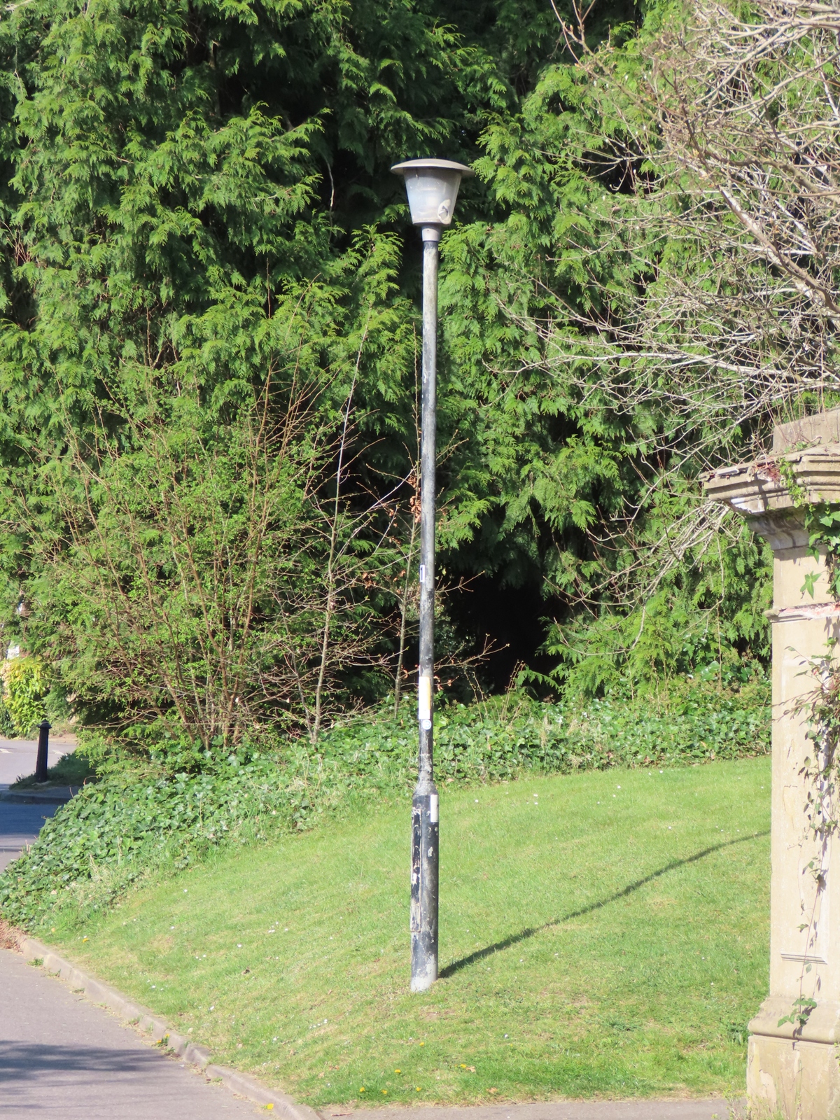 222C. High Street, Bramley, Waverley, Surrey With thanks to Louis Cunningham for informing me of these Survivors. Attached to a building that is located opposite Windrush Close is a rather Heath-Robinson looking top-entry wall bracket supporting a lantern from GEC's Z5590 range. The bracket is pressed against the building, although it may originally have overhung the carriageway itself, before being moved to its present position to avoid potential collisions with high-sided vehicles passing along the High Street. If this is the case, the bracket has been in the present position since 2008 (at least). A modern 'heritage' column exists on the opposite side of the road, suggesting that the Z5590 is disused anyway. Further along the High Street is a 15 ft (5 m) tubular steel column made by Stewarts & Lloyds that supports another GEC product - a post-top lantern from the Z5670 series.