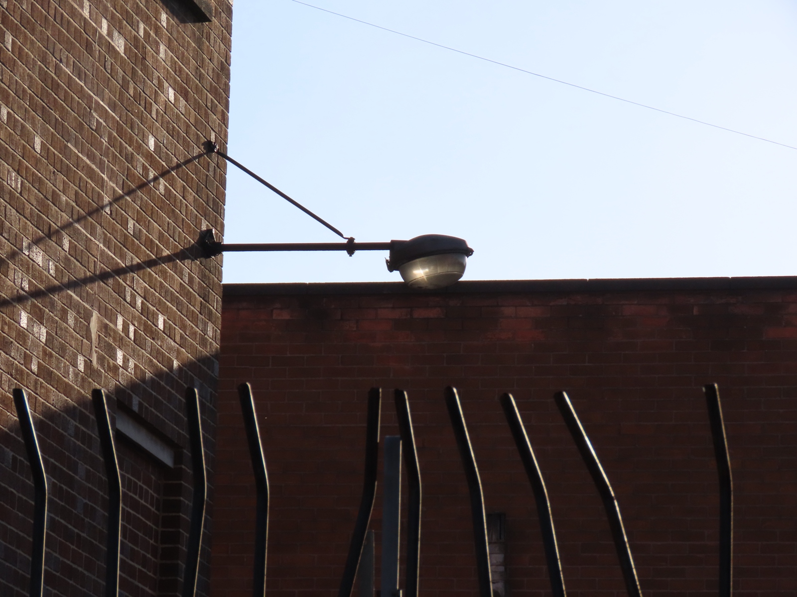 The lantern is visible above the gates that secure the yard area.