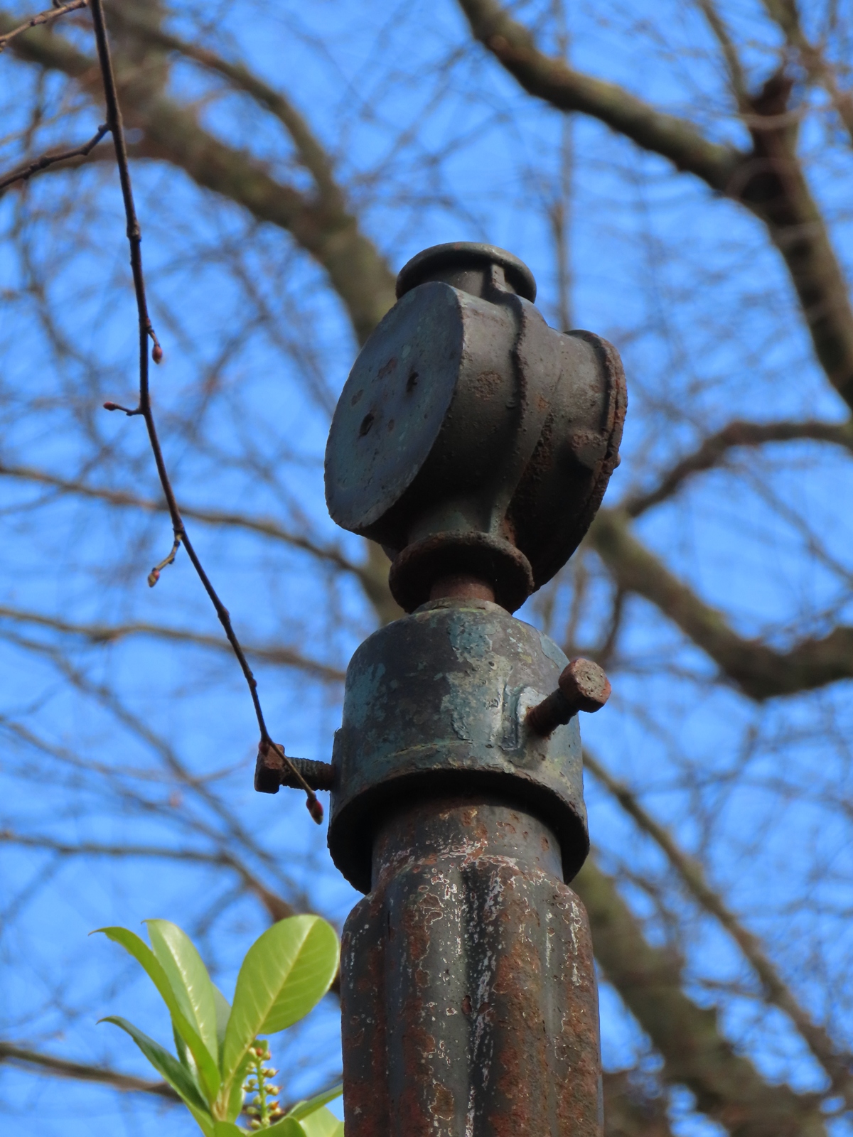 97AD. Off Stafford Road, Dimbles, Lichfield, Staffordshire With thanks to AgentHalogen_87 for informing me of this Survivor. Located near the corner of Eastern Avenue, adjacent the roadway leading into The Spires Care Home (and, historically, Nearfield House), is a disused 15 ft (5 m) Stewarts & Lloyds tubular steel column. No lantern remains on the column, although a cast iron Revo fuse box is still fitted to the column spigot. Prior to the construction of The Spires, newer tubular steel columns supporting GEC Z5680 post-top lanterns were installed further down the roadway, as seen here, but this column still appeared redundant by then.