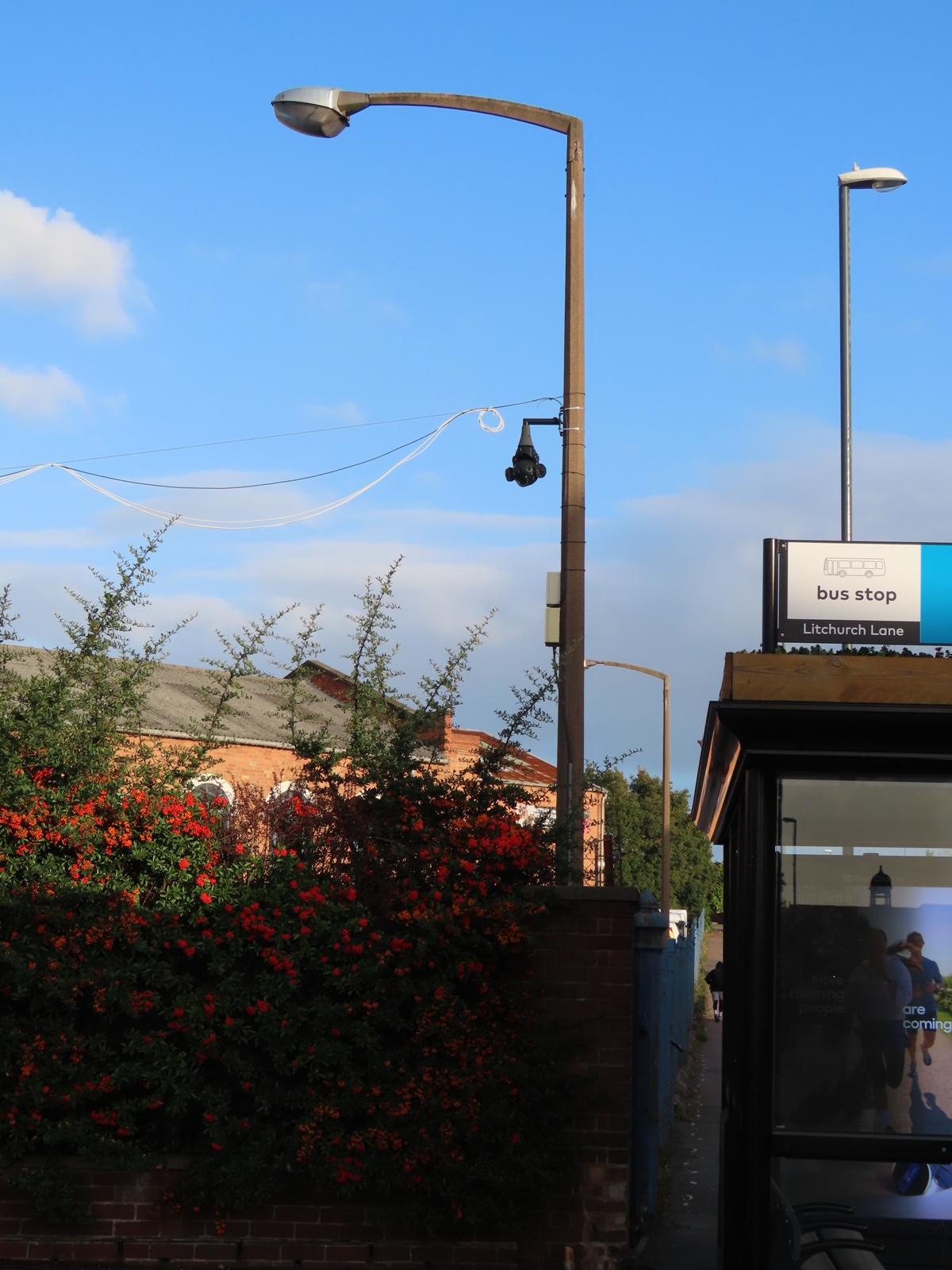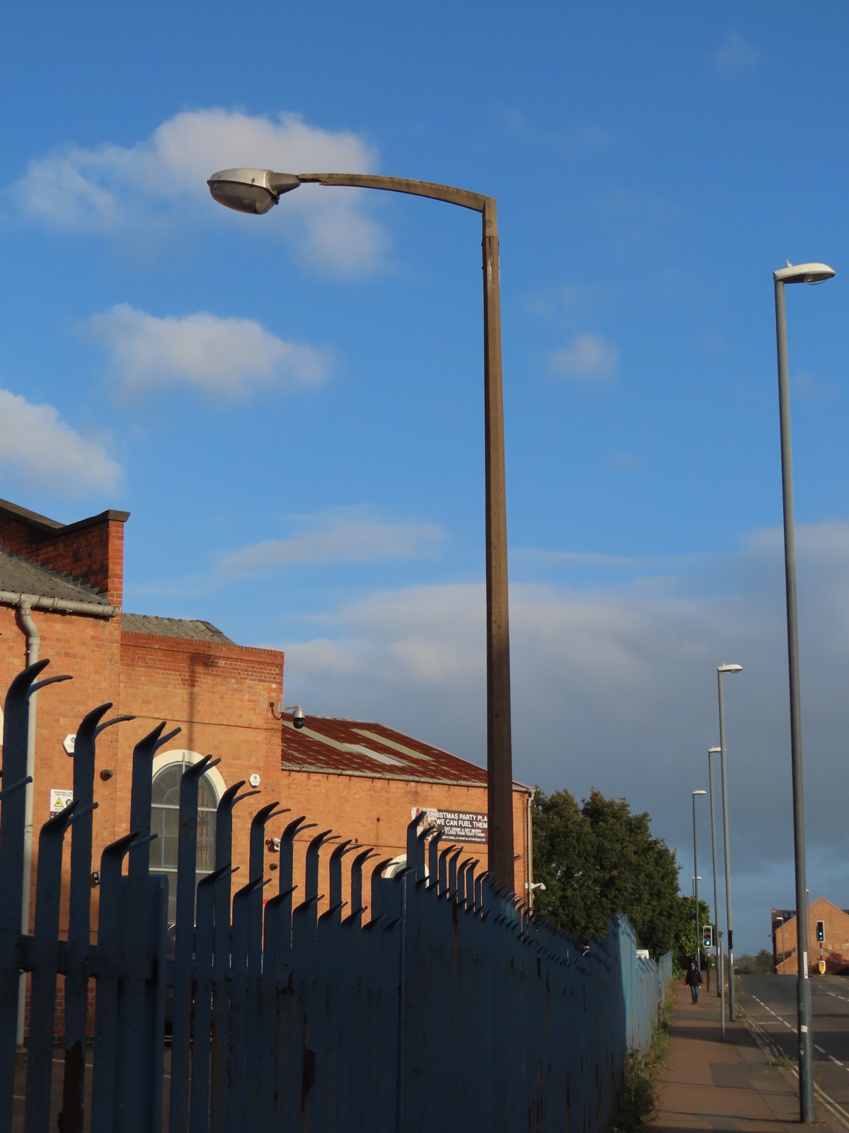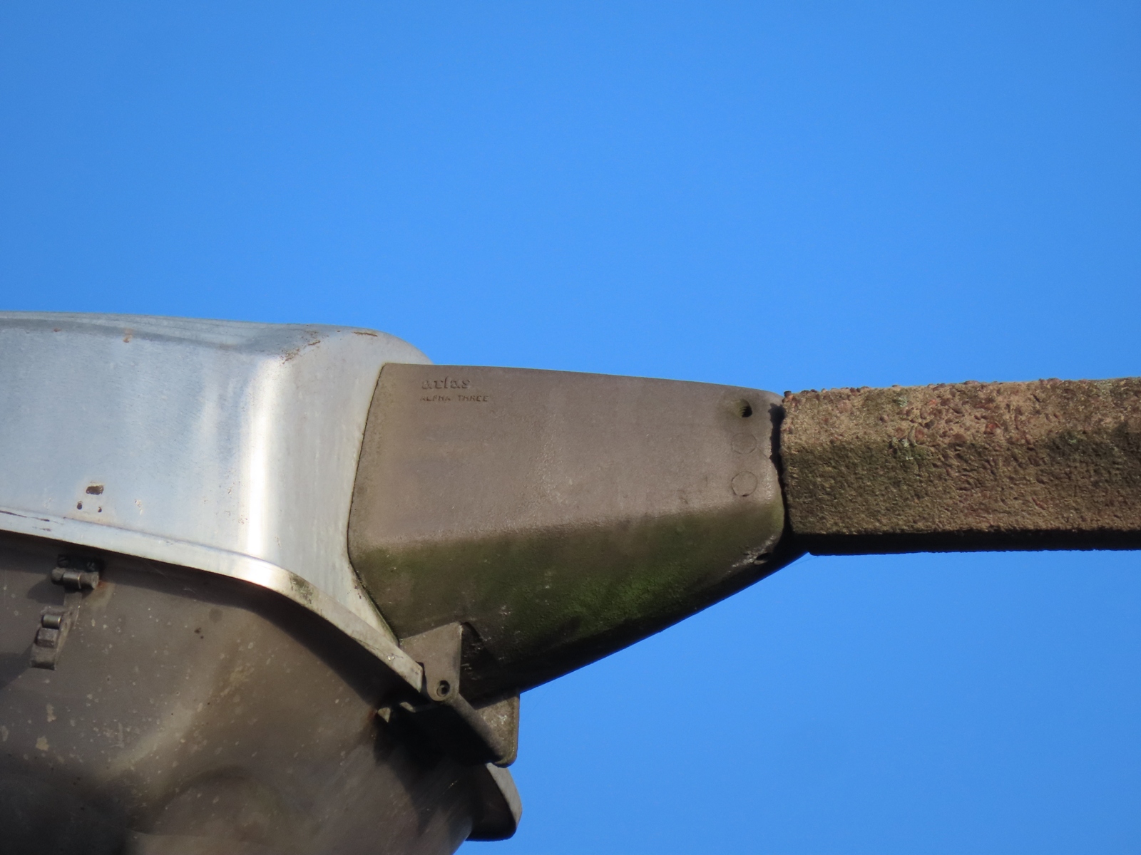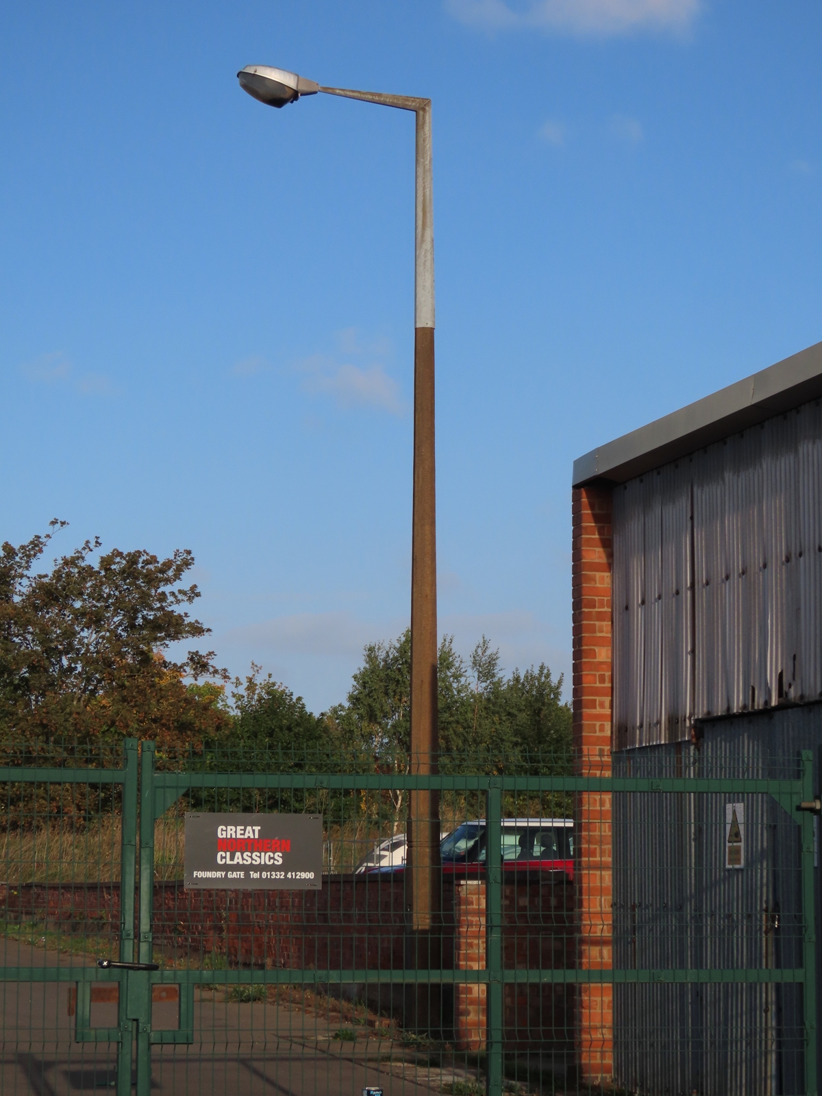 A tubular steel supporting a bowlless Alpha 3 survived the redevelopment work along the former factory's access road.