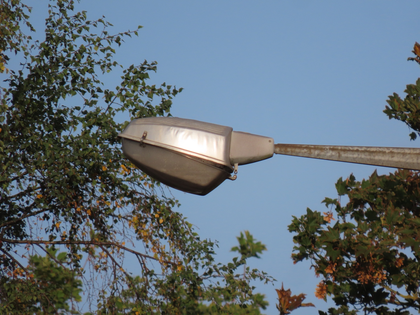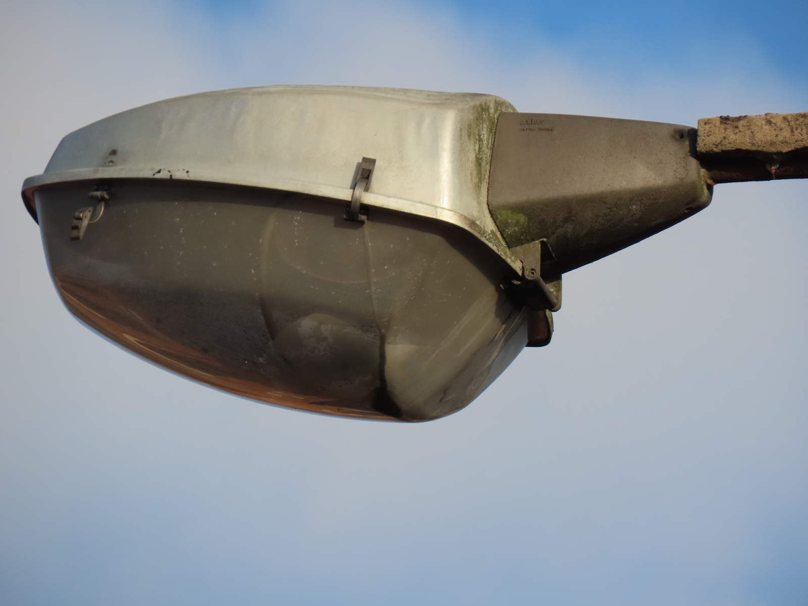 These are genuine Thorn lanterns (probably dating from when the original concrete brackets were replaced by the sleeves) - the fact that the bowl seems to have become a small greenhouse suggests that omitting the two rear bowl clips from later versions may not have been a wholly advisable decision!