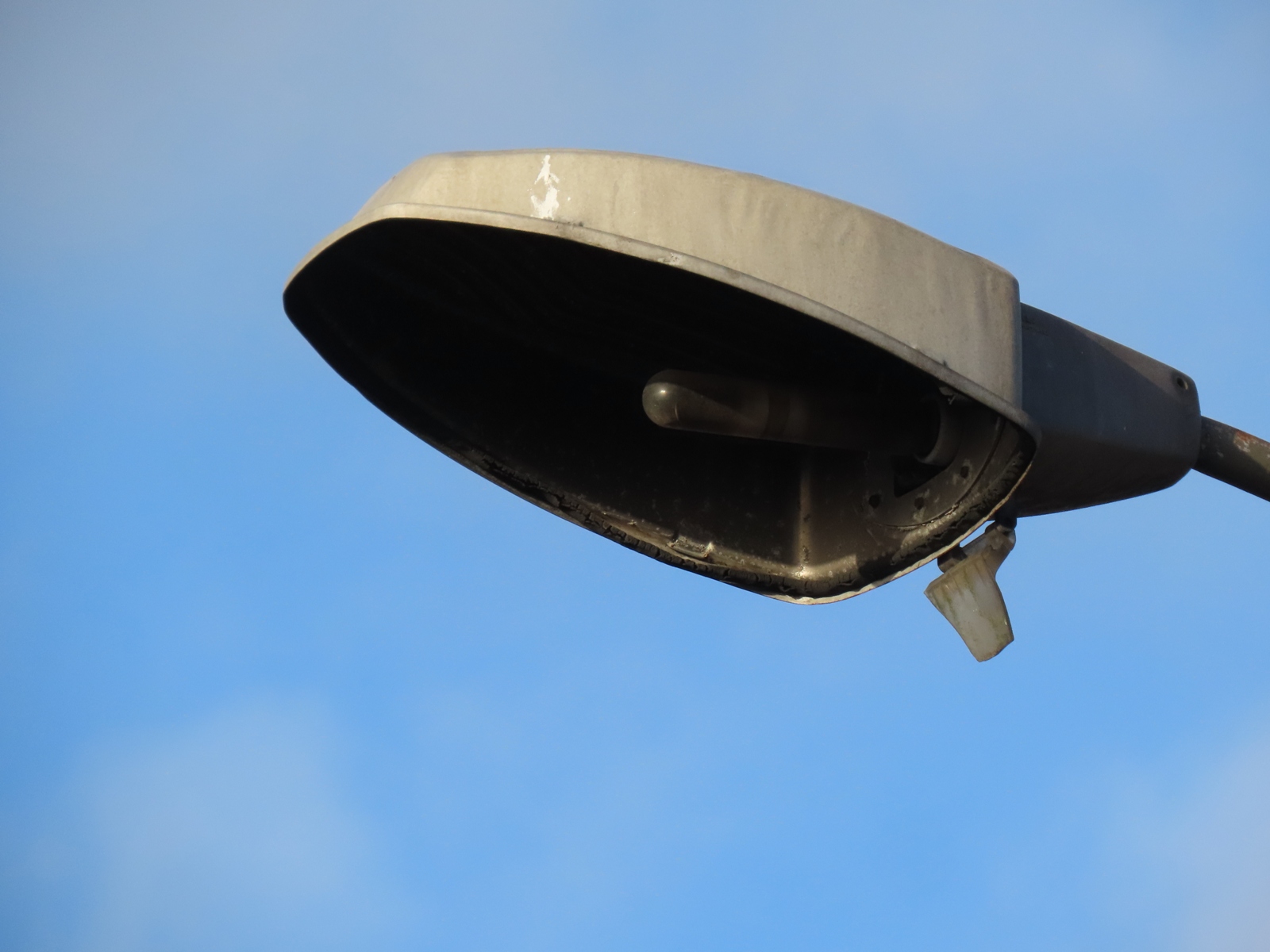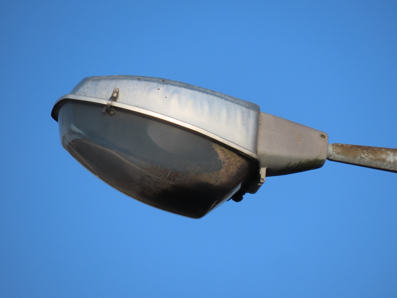A very grimy tubular lamp remains installed within the lantern.