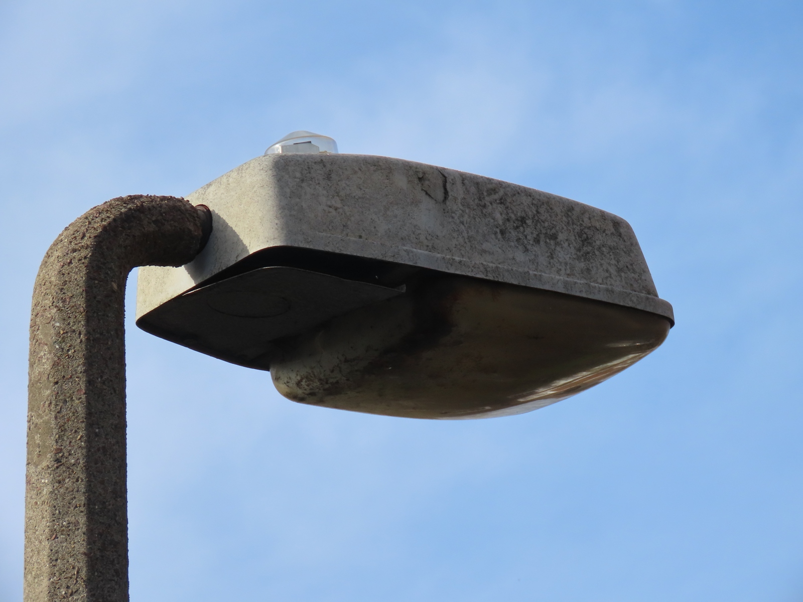 Unlike this type, later versions of the lantern saw the single piece GRP (Glass-Reinforced Plastic) canopy replaced with a type with a detachable back, from where the internal wiring could be accessed. On these versions, the same is accessible by removing the plastic panel over the rear of the lantern (seen slightly ajar in this view).