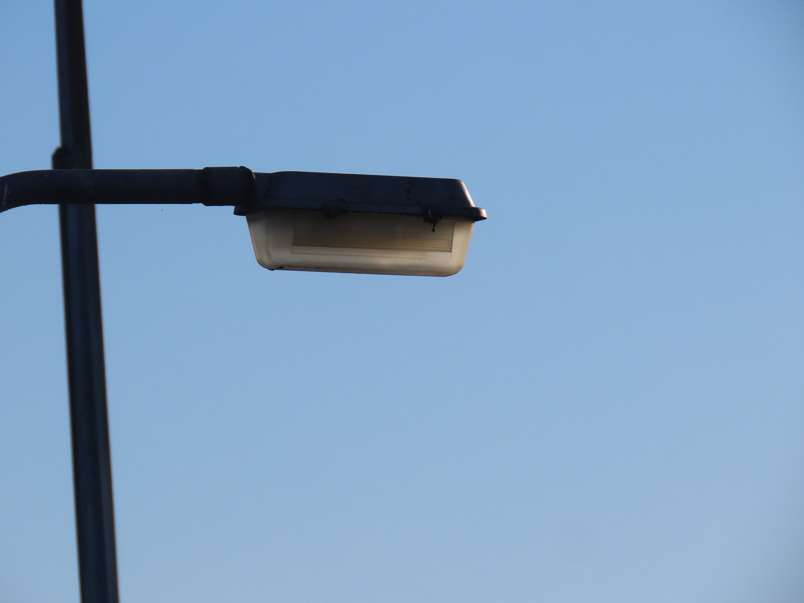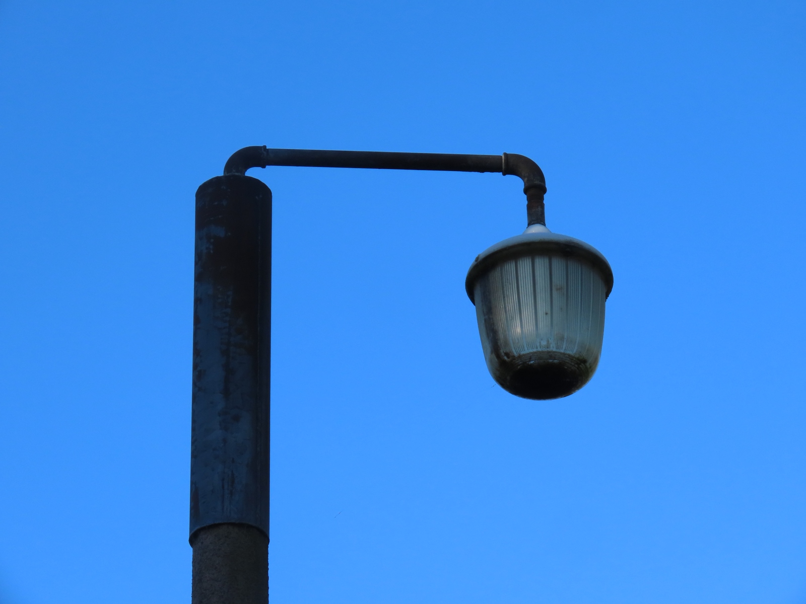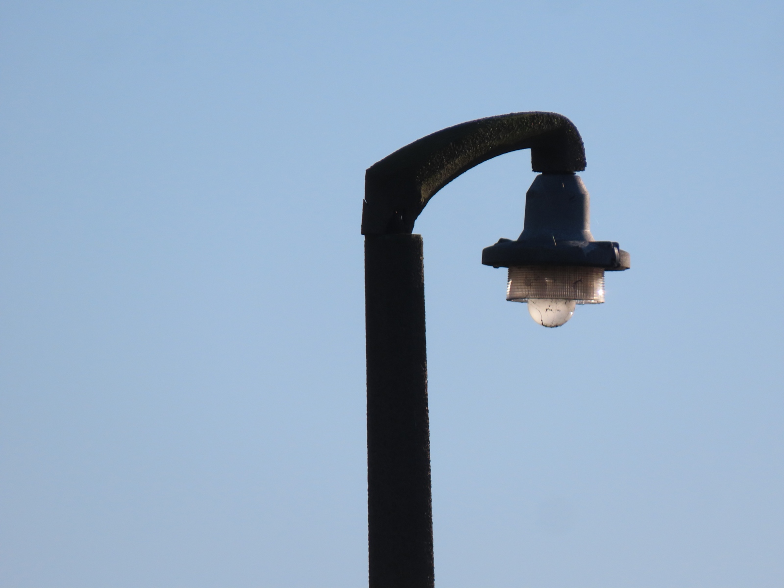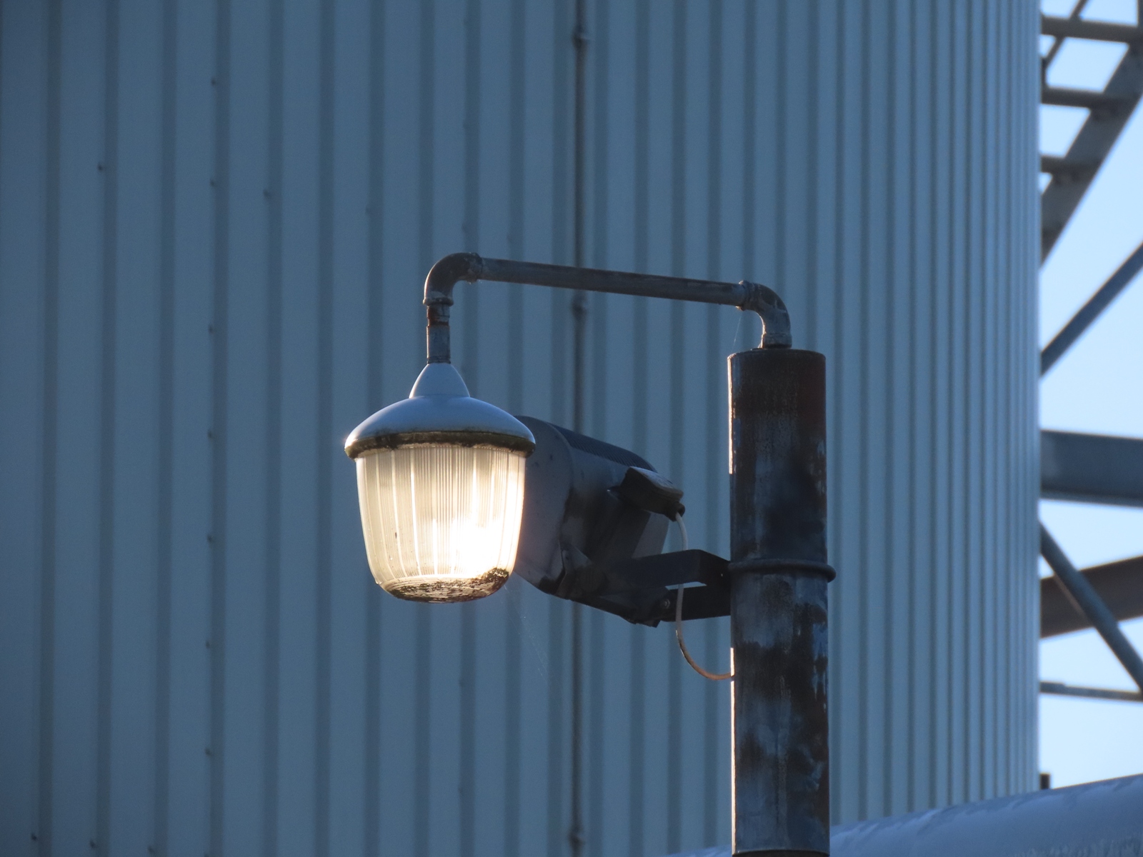 A relatively large GLS lamp protrudes from beneath the HW-852's prismatic glass refractor dome. If the lanterns had been fitted with bowls when new, both are now missing. The rear section of the pictured example's bracket has some structural damage.