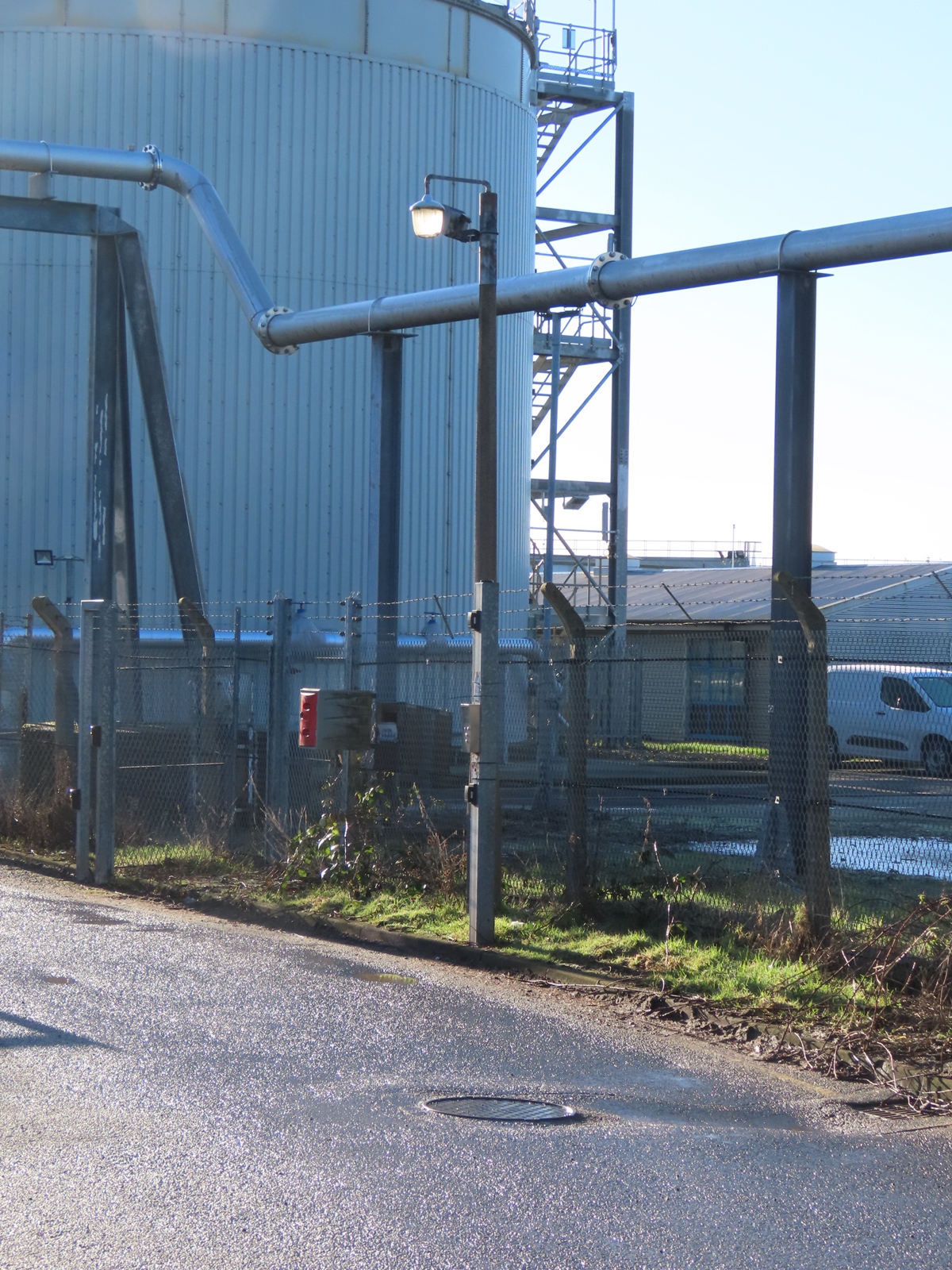 One of the sleeved columns is located by the junction that leads into part of the sewage works complex.