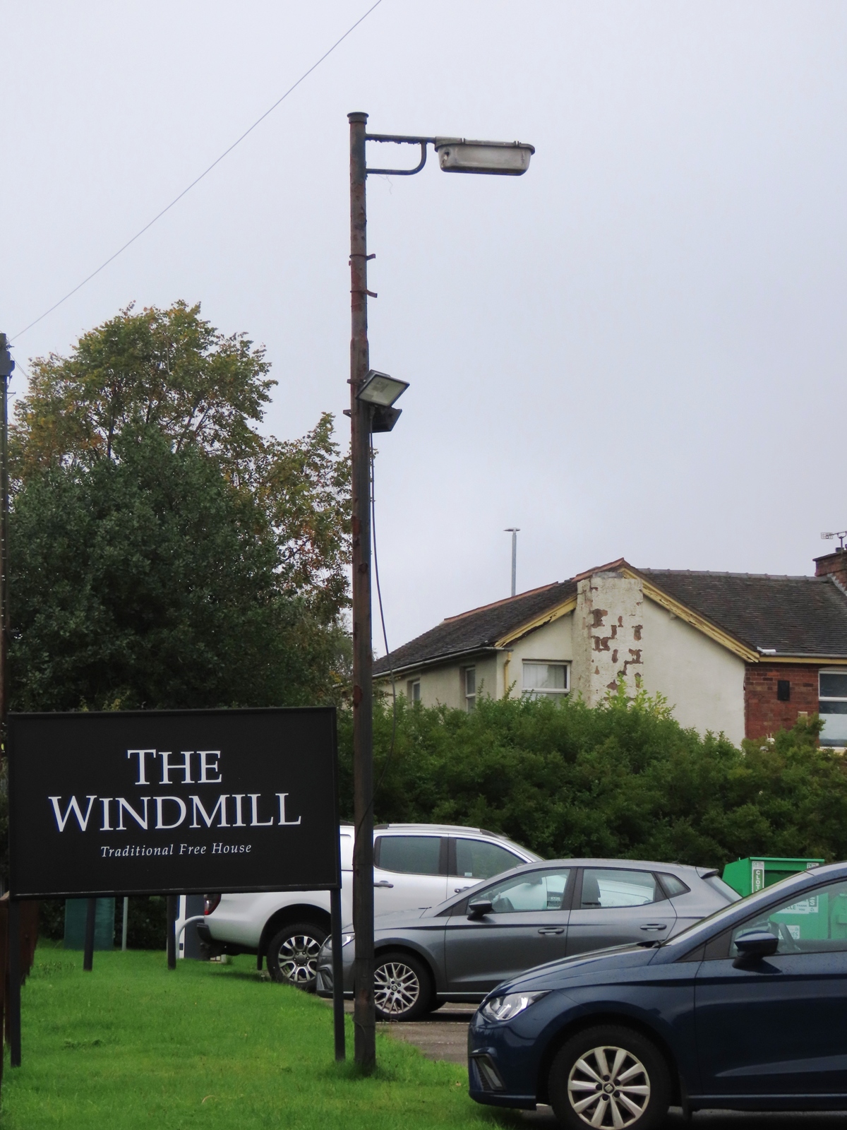 Passing the eponymous windmill after which the pub is named (images and a brief history are provided here), the column supporting the SR-304 is seen. This too features a newer floodlight attachment, again suggesting that the original lantern has fallen out of use.