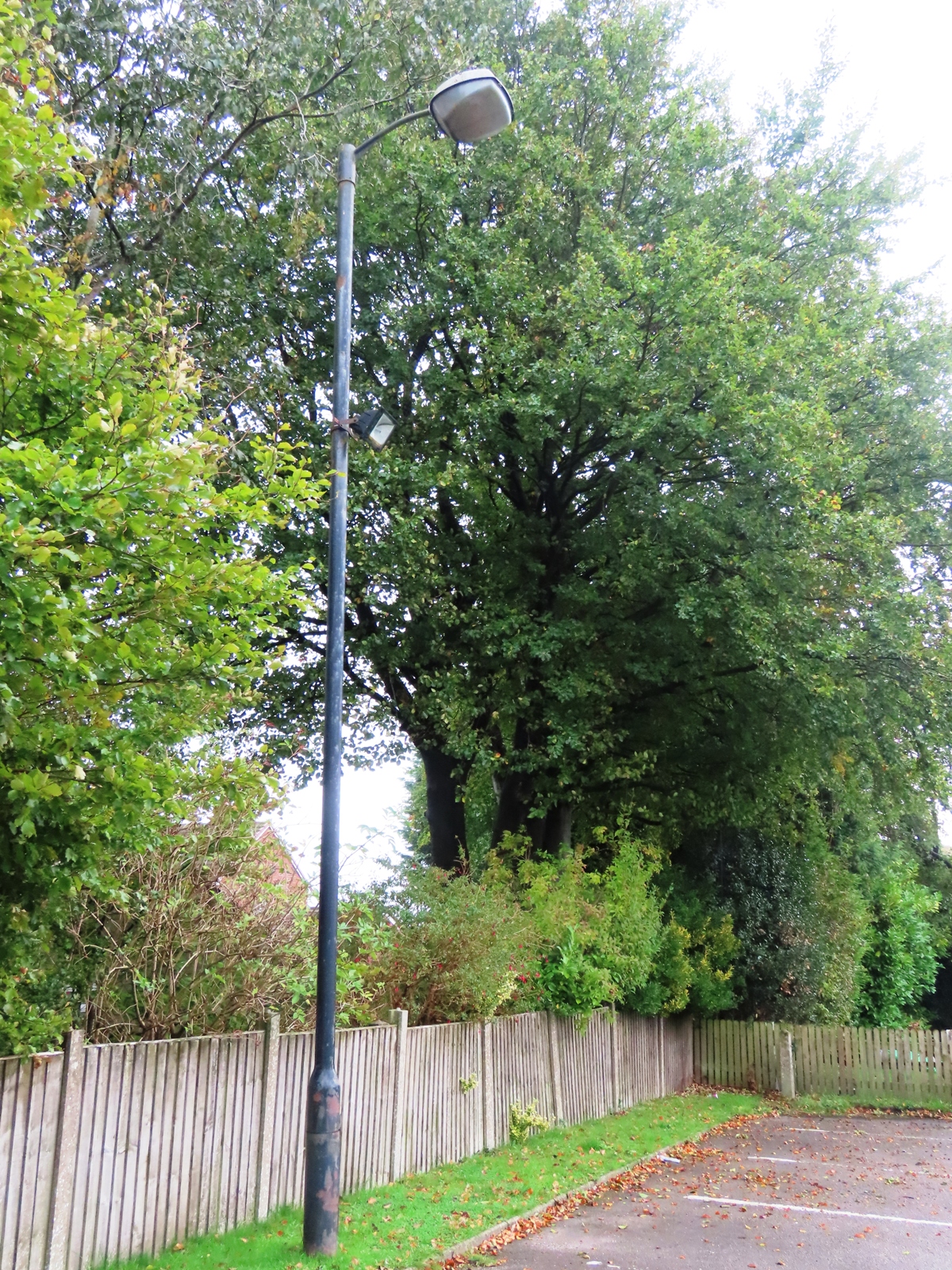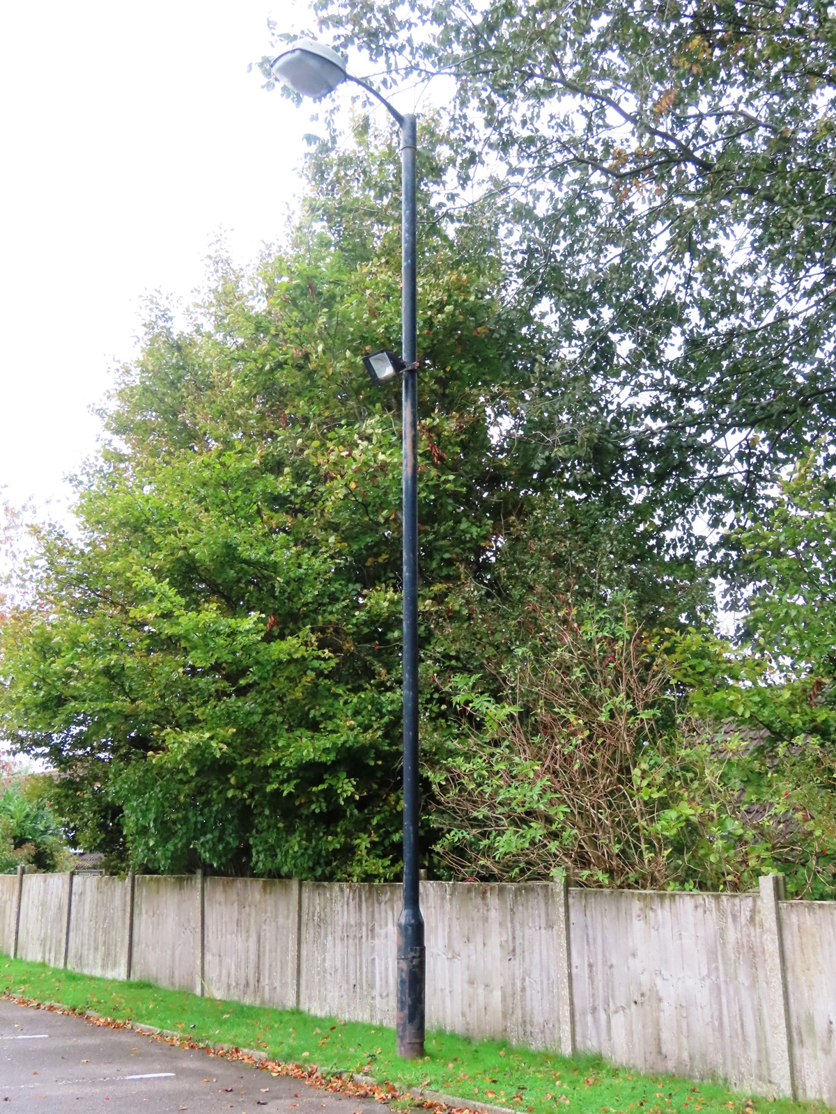 Unlike the first column, this example does not feature a fluted shaft. The base is also readily accessible. The same type of column (albeit, with the bracket removed) supports the Areaflood a little further along this part of the car park.