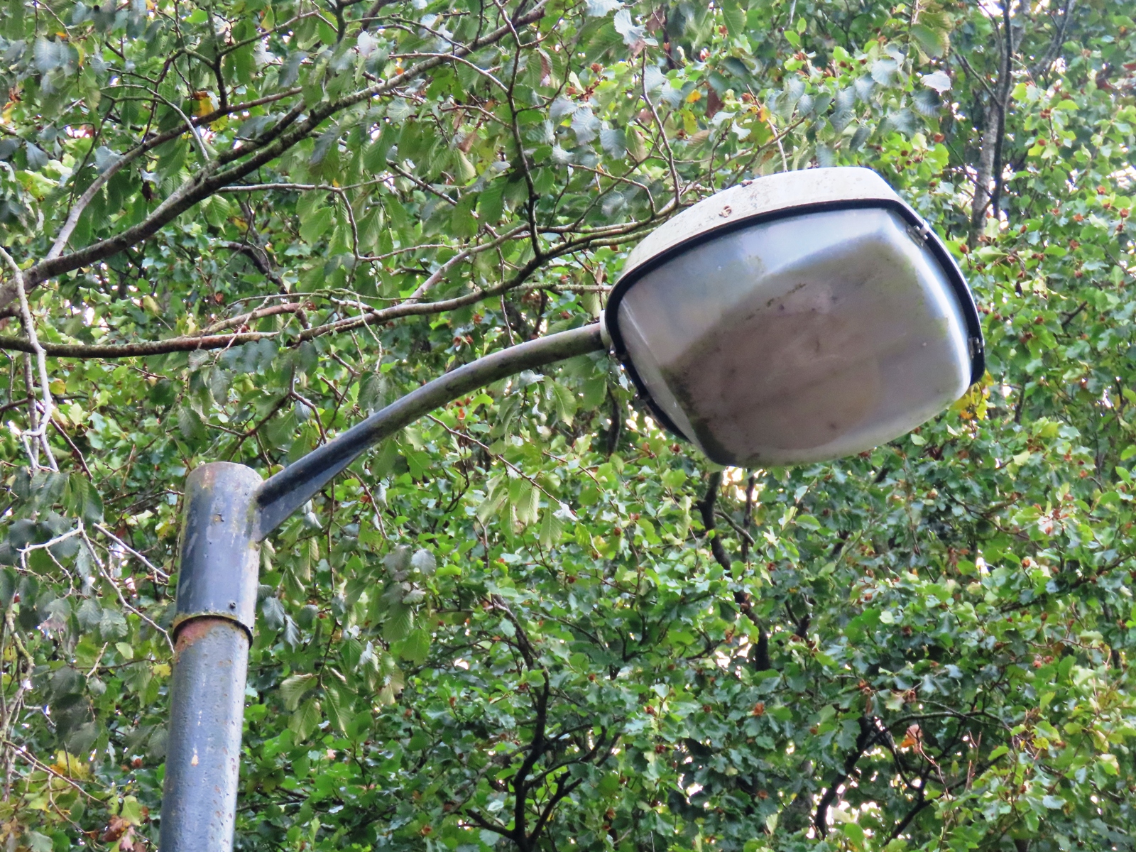 An elliptical lamp (probably 250 Watt) remains visible within the lantern. A circular spot painted on the inside of the bowl would help to diffuse the light cast immediately downwards, reducing the 'hot spot' effect on the carriageway directly below the lantern.