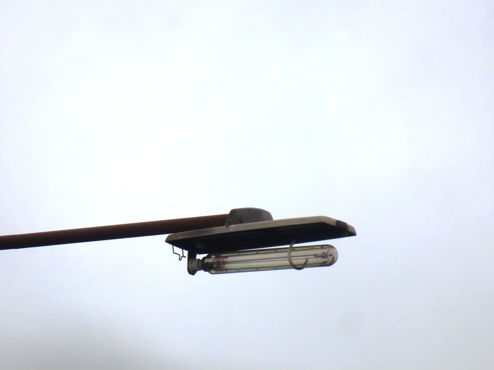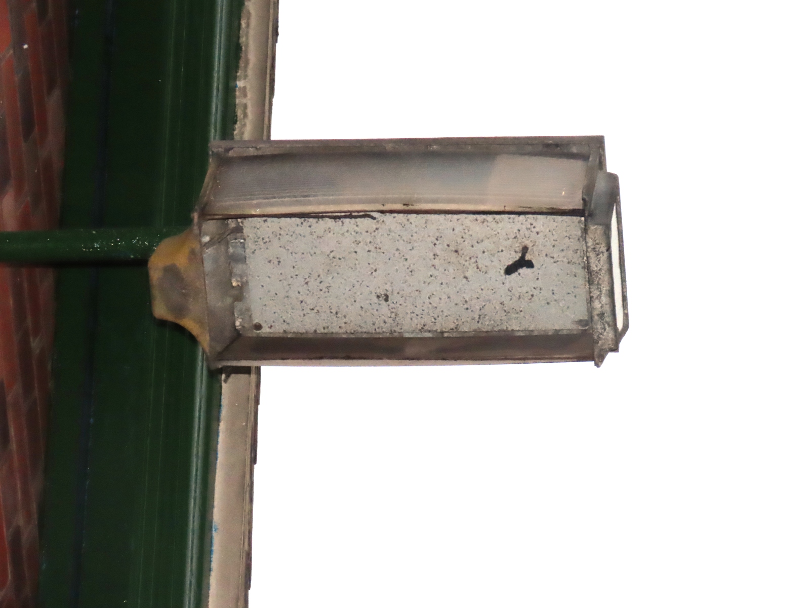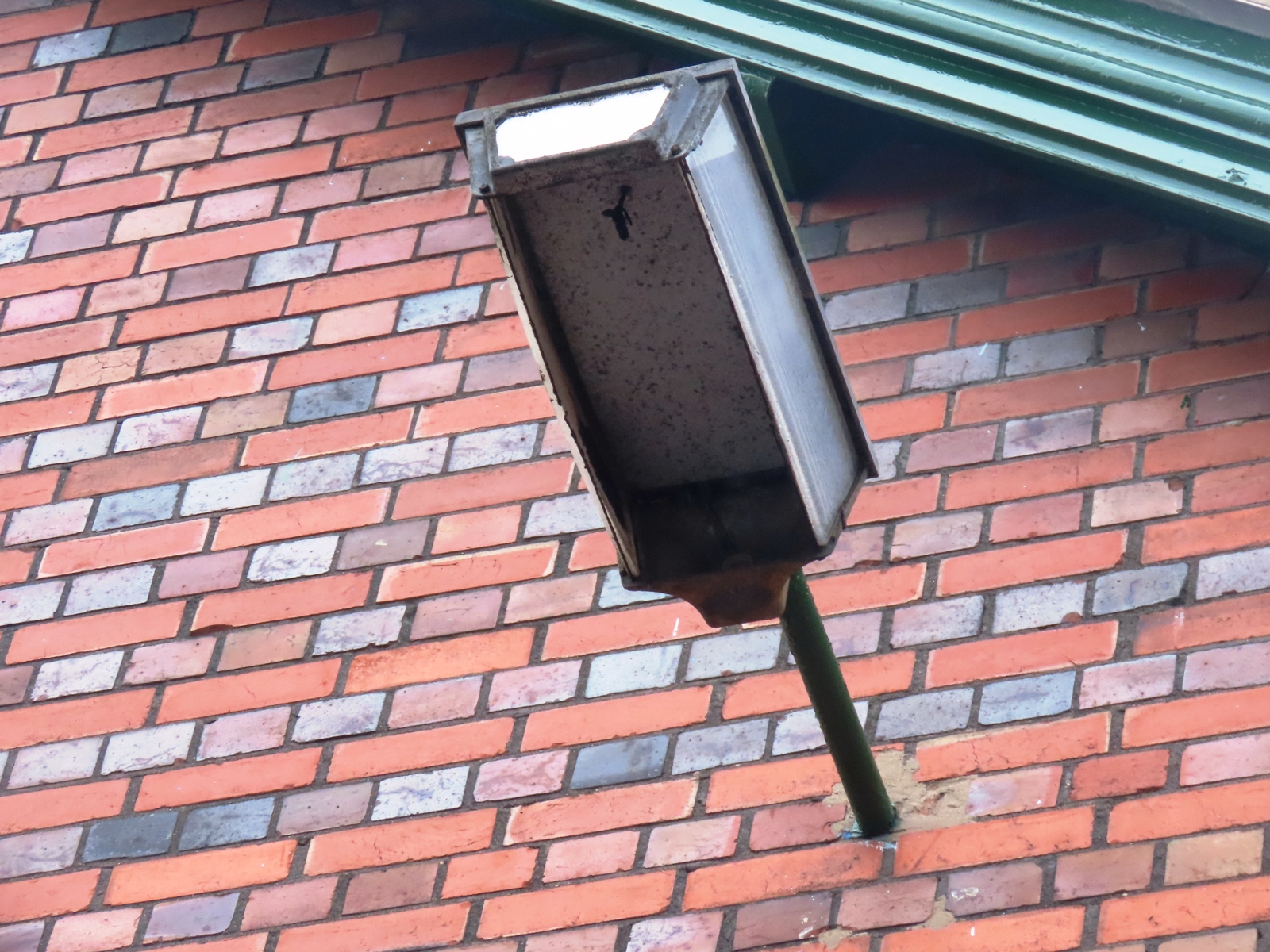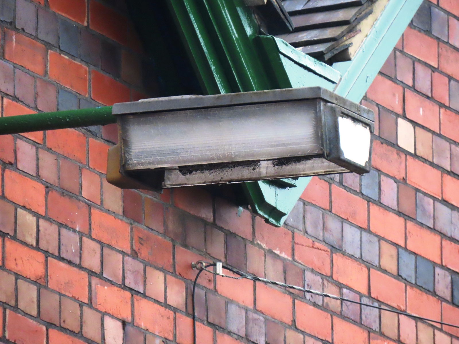 A Philips 90 Watt SOX lamp remains fitted. Judging by the design of the front end, the lamp could date back to the 1970s, suggesting that this lantern is also long-abandoned.