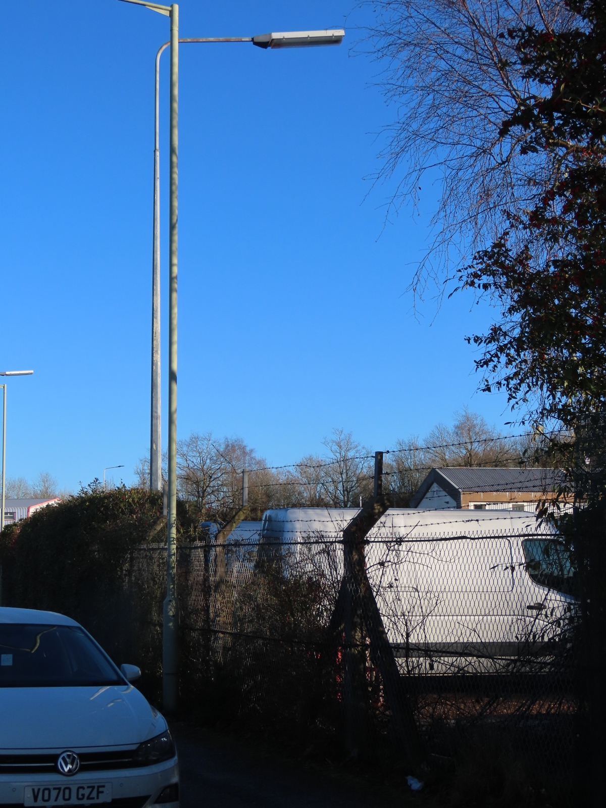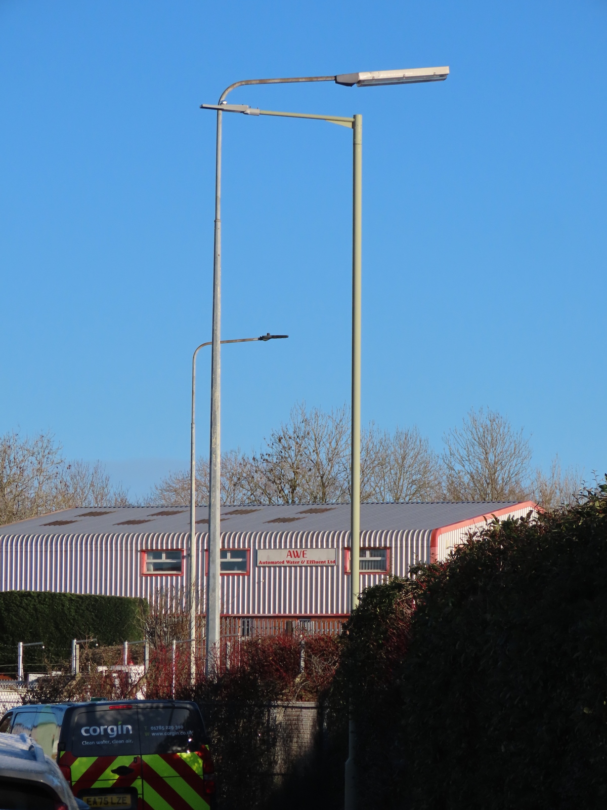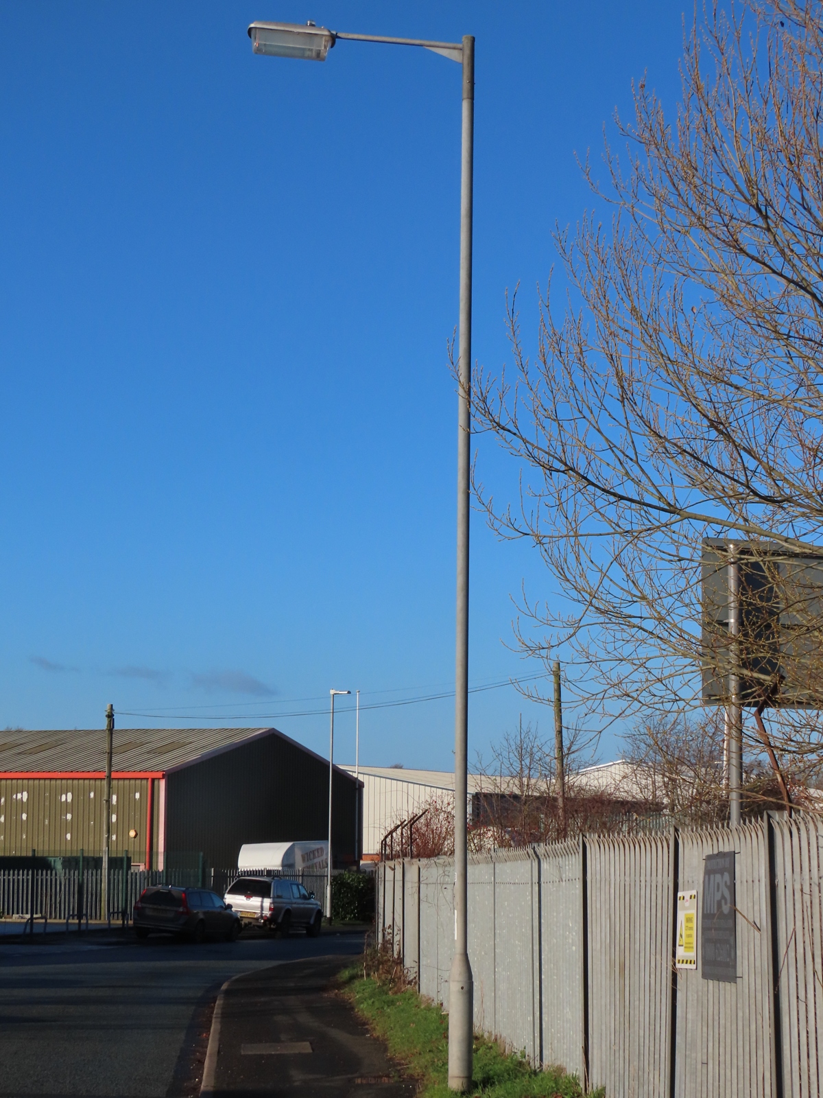 Whereas the two 180 Watt lanterns were attached to 10 m sheet steel columns, the Z9454s are fitted to 8 m tubular steel columns.