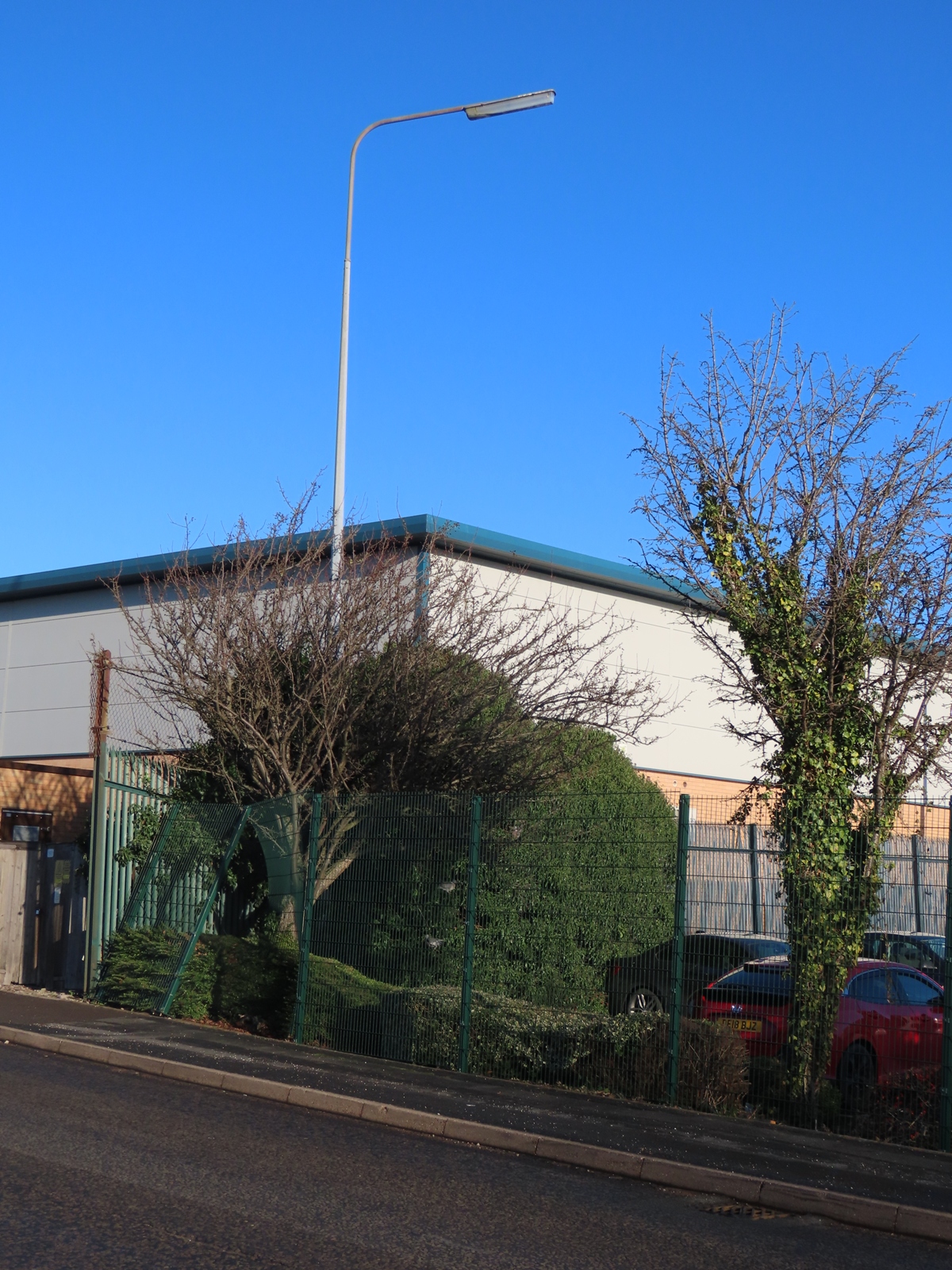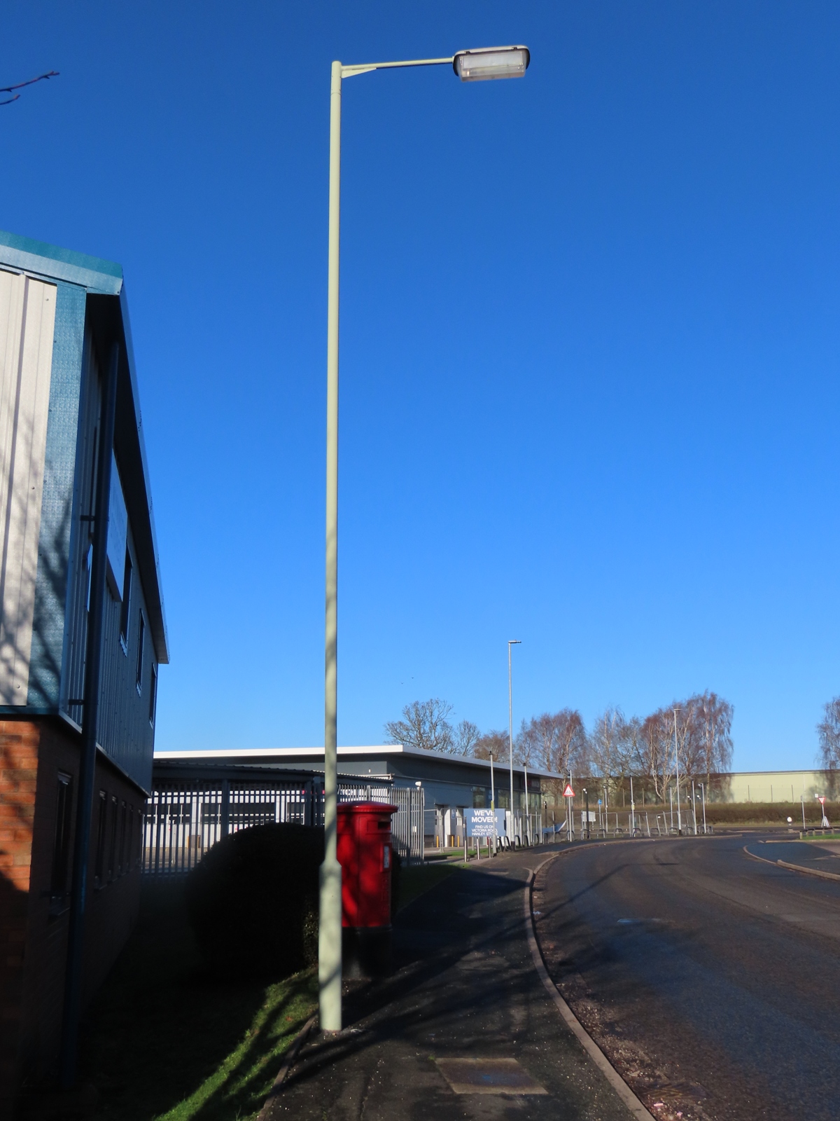 Off Tollgate Drive, Tollgate Business Park, Hopton and Coton, Stafford With thanks to both AgentHalogen_87 and Leo Conway for informing me of these Survivors. In something of a "sponsored by GEC" scenario, not only are some surviving privately-owned lanterns along this estate, products supplied by GEC; two of the surviving (original?) street lighting lanterns are also. The private lanterns are Z9563s and Z9564s, both for 180 Watt SOX (low pressure sodium) lamps, although the Z9563s offer a cut-off lighting distribution, and the lamp control gear is housed in the lanterns themselves, whereas the Z9564s feature a semi cut-off distribution, and the control gear is mounted remotely. The notable street lighting lanterns comprise Z9454 lanterns, for 90 Watt lamps (or 66 Watt SOX-E lamps, as these examples will run).