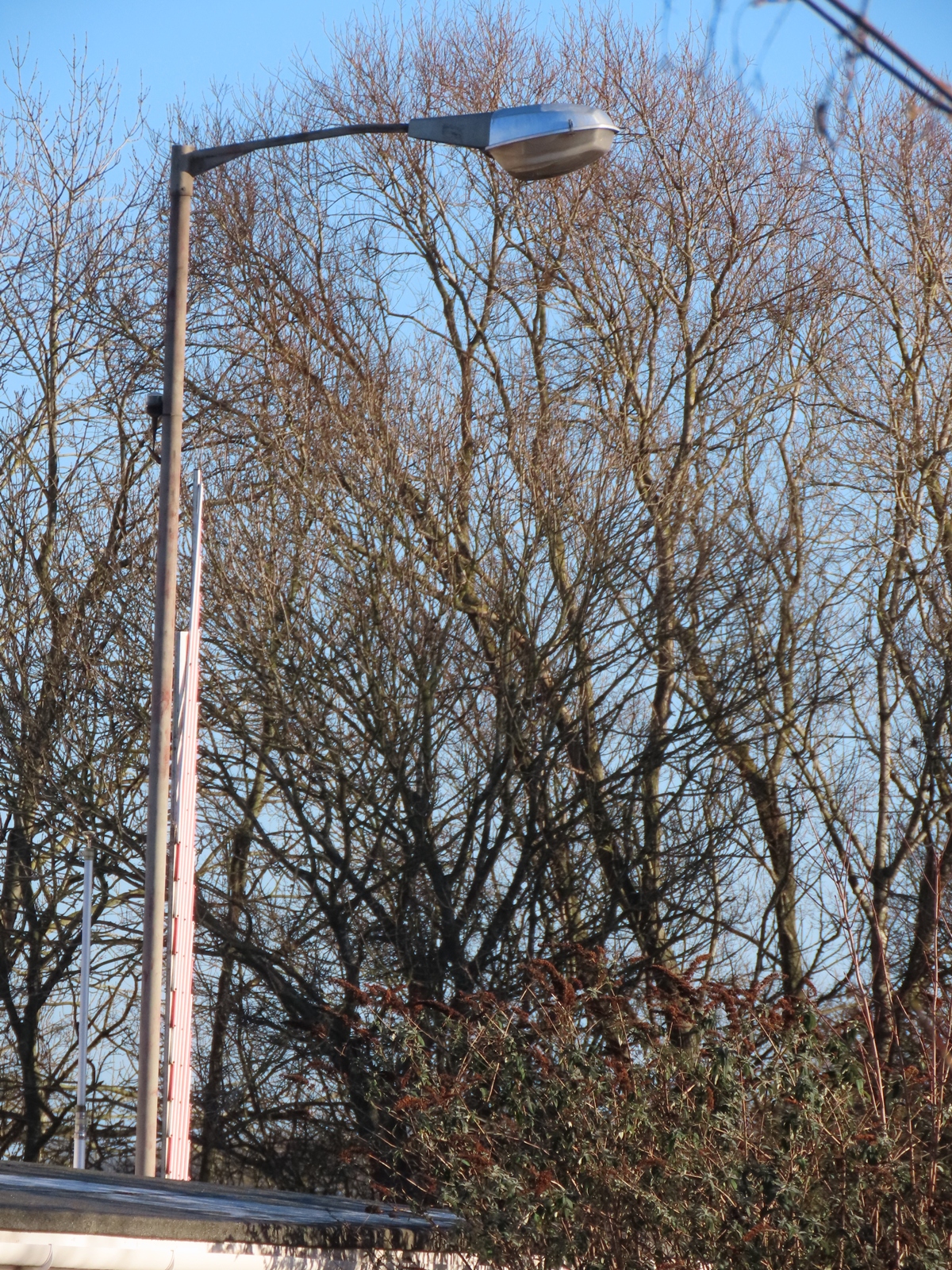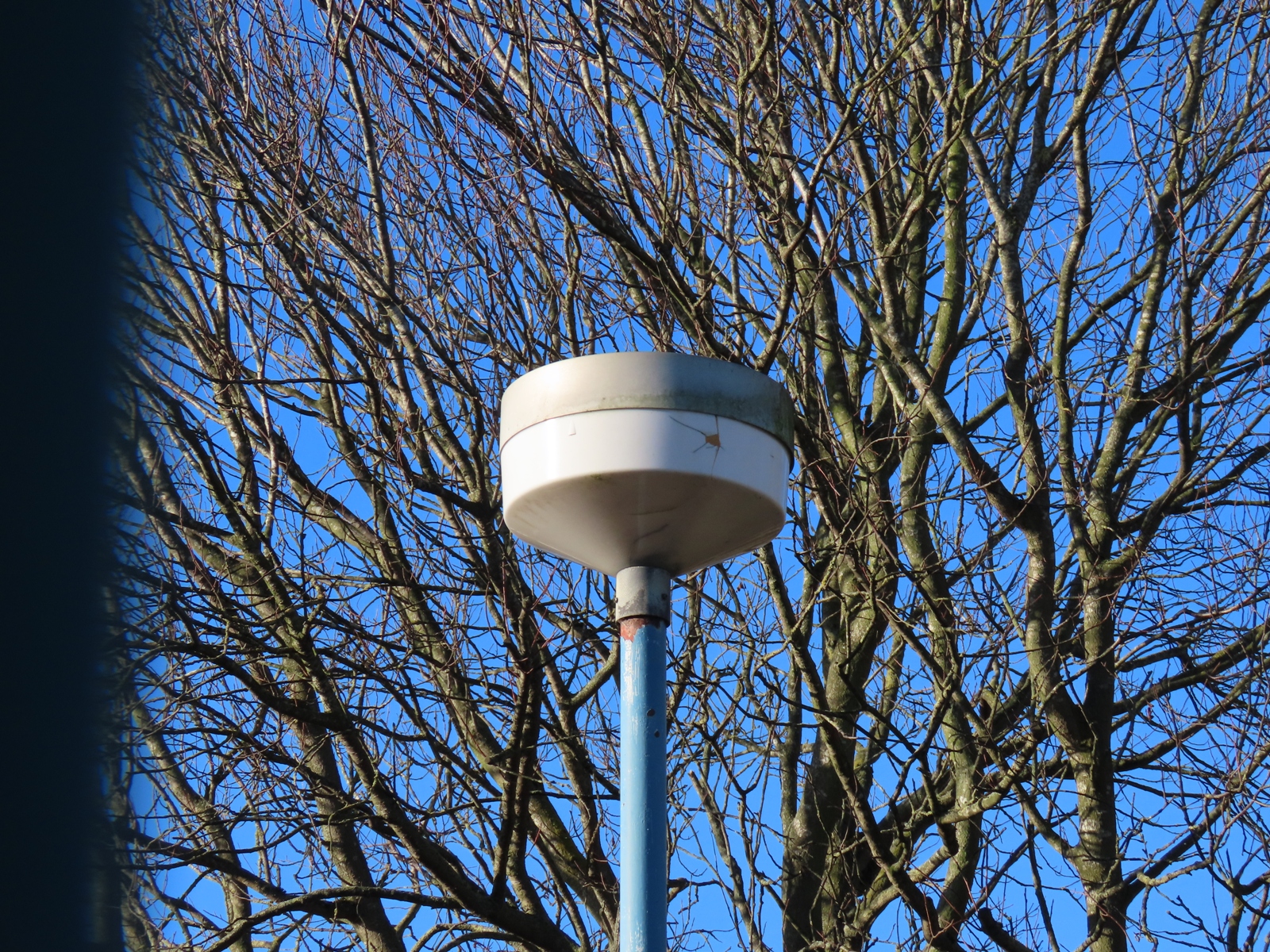 A bracket supporting a Royce Thompson Oasis 1000 photocell is attached to the column supporting the Riversdale Road Alpha 3, suggesting that it may remain in nightly use.