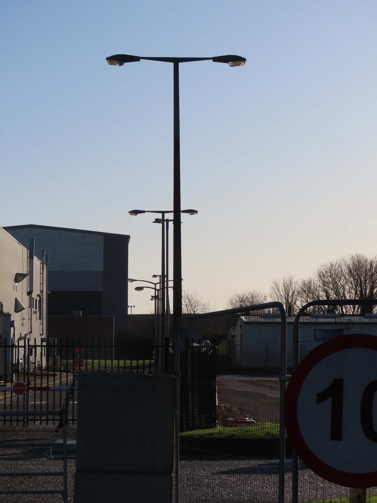 Looking back into the former factory site, a selection of other columns and lanterns can be seen. First are two further Stanton 8s supporting Horizon Majors on replacement brackets.