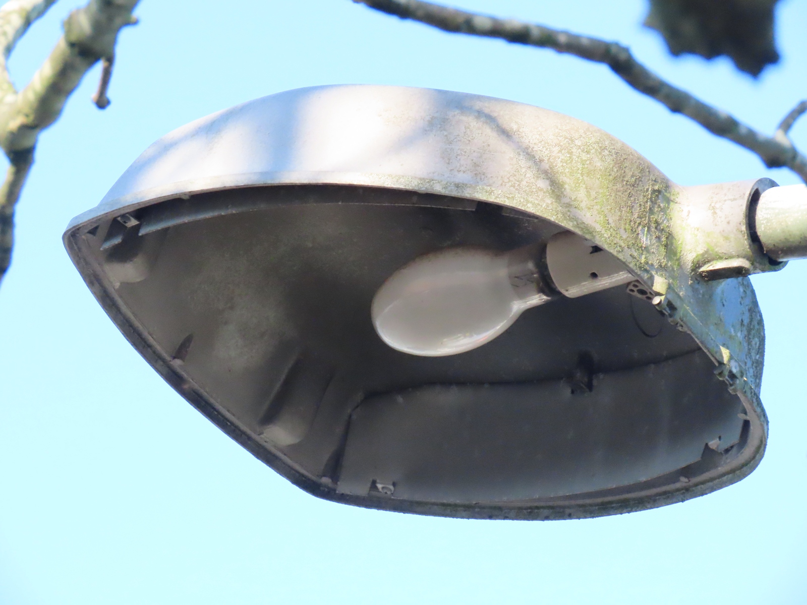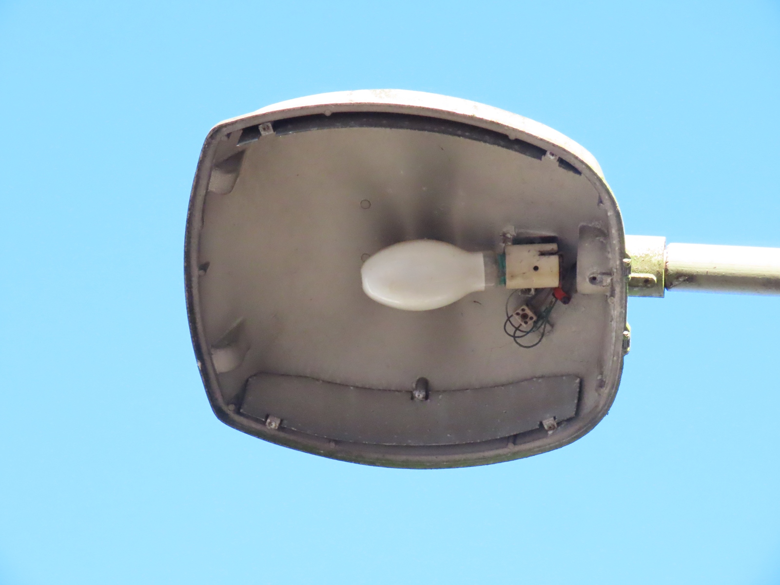 Elliptical lamps are still fitted in the lanterns, and judging by their size, they appear to be 250 Watt; the lantern being able to accommodate up to 400 Watt MBF (mercury vapour) or SON (high pressure sodium) lamps.