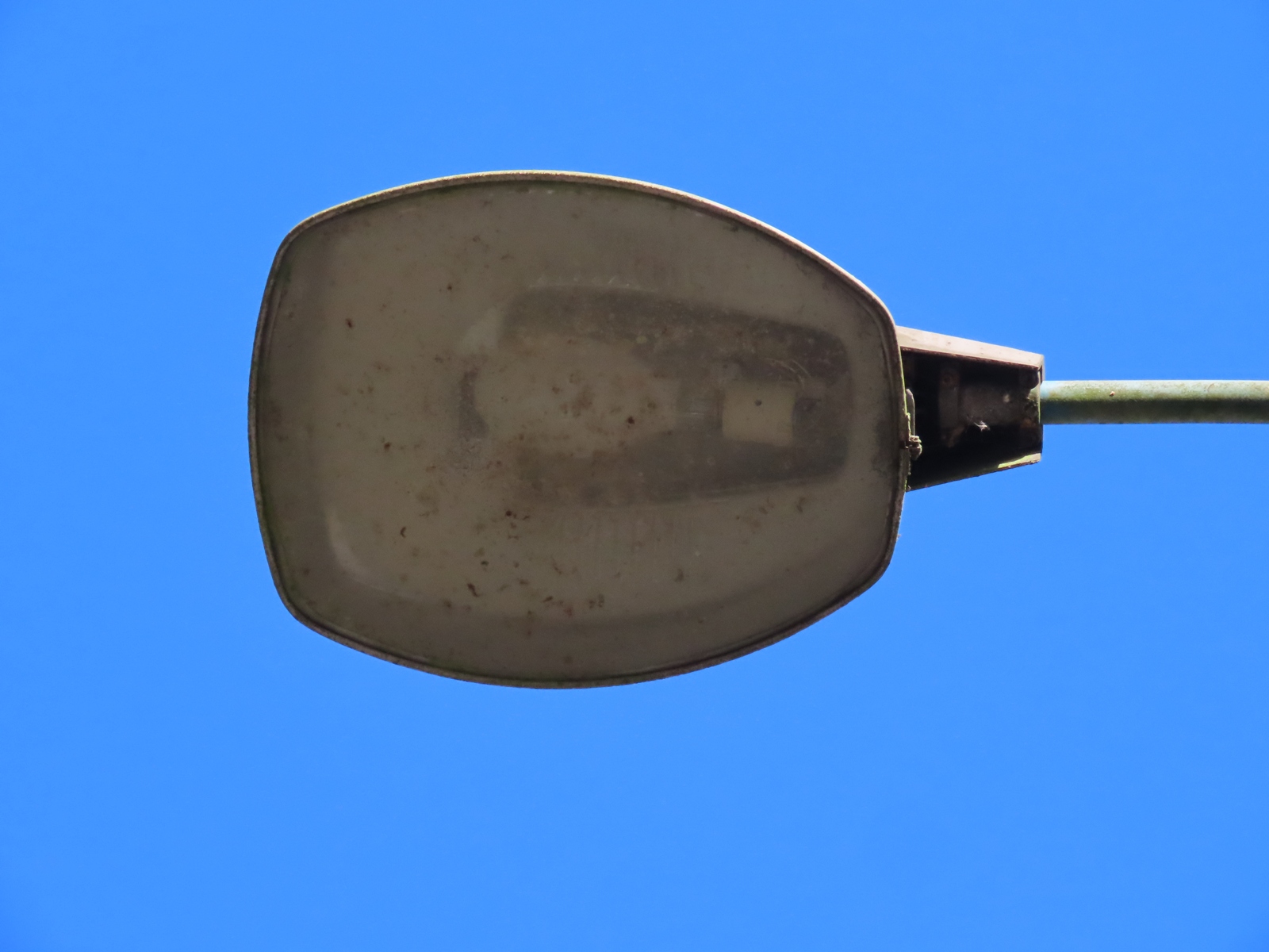I attempted to open the door to see what, if anything, remained inside the curtailed column, but the old internal locking bar was jammed. I was, however, able to peer in through a small gap at the top of the door, and spy a heavily-corroded aluminium-cased capacitor attached to the backboard. The ballast looked to be missing.