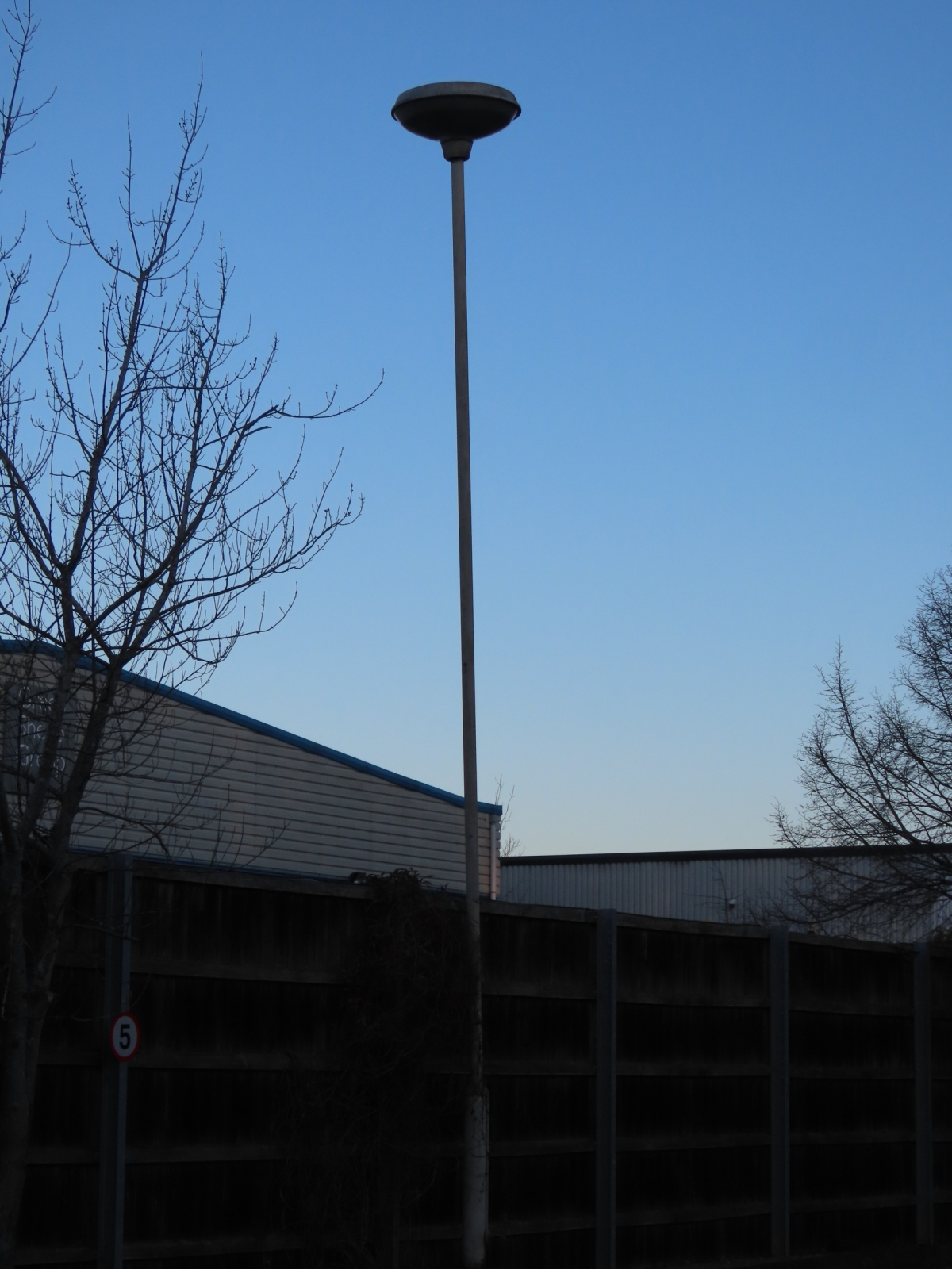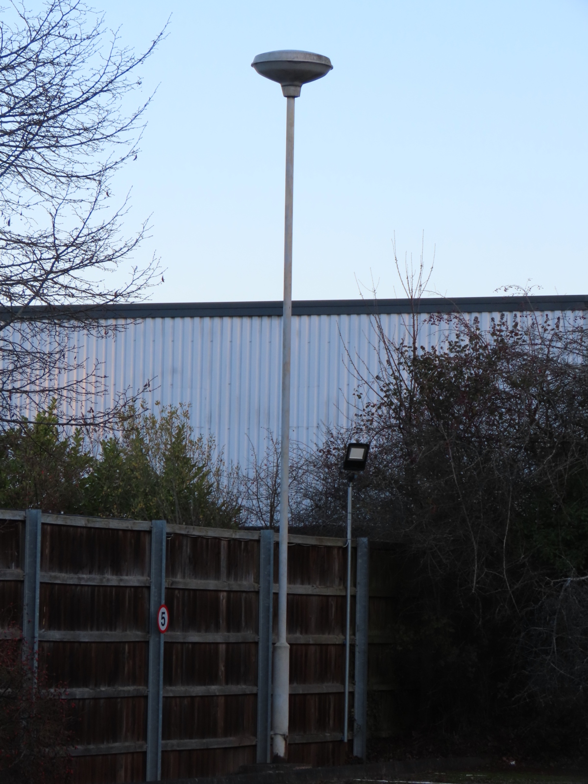 Off Claybrook Drive, Washford East Industrial Estate, Matchborough, Redditch, Worcestershire With thanks to Leo Conway for discovering these Survivors. Installed in a works car park near the entrance to the Industrial Estate are two 25 ft (8 m) Abacus base-hinged columns, both of which support a Thorn Gamma 4 post-top lantern, designed for running up to three lamps, with 3 × 400 Watt being the maximum quantity and wattage permissible. The two columns could be left over from when the Industrial Estate was a larger Engineering Works, although this map produced no later than 1974 indicates that the area now used as the car park was undeveloped at the time.