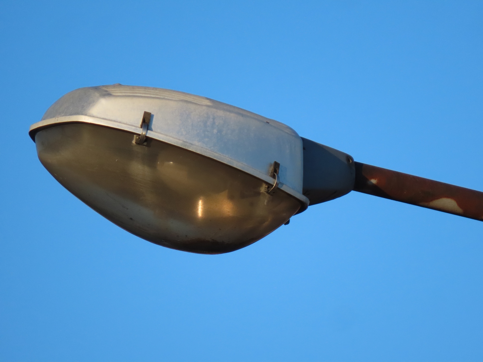 The bowl is relatively clean, revealing that a 250 Watt elliptical lamp of some repute remains installed within the lantern. The painted white diffusion spot on the lowest portion of the bowl has worn off entirely, assuming that such detail ever existed.