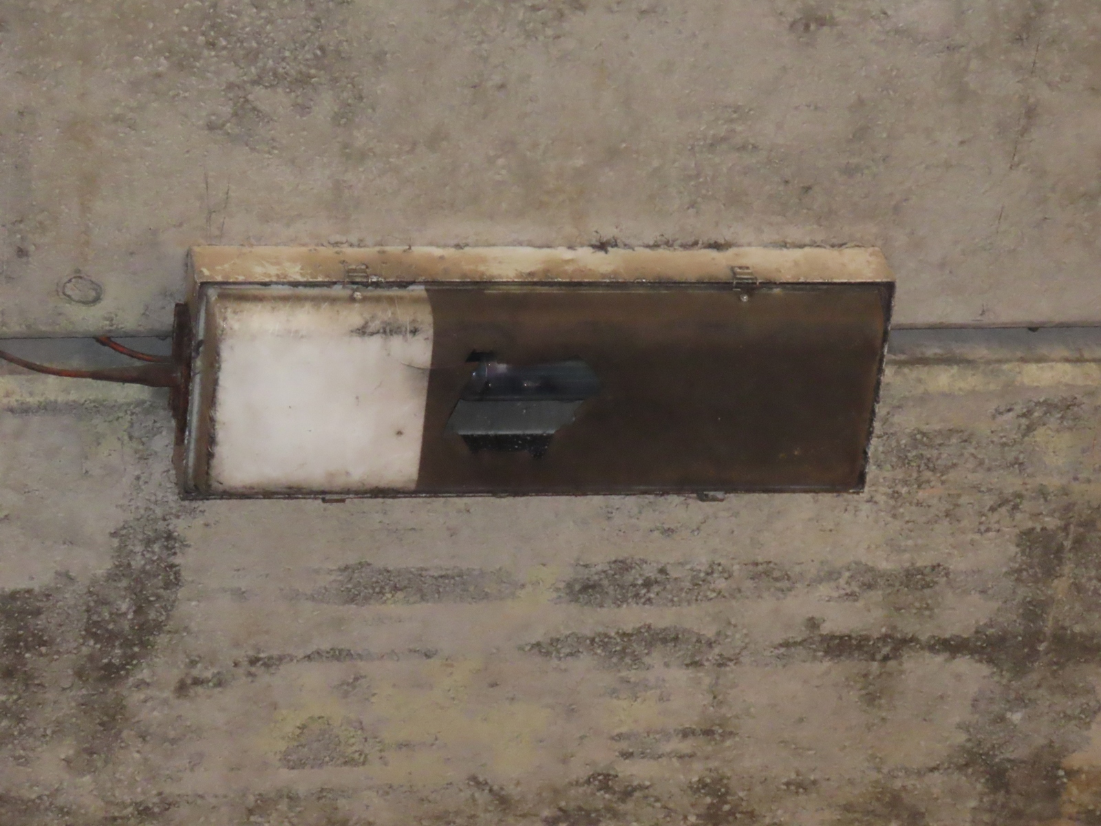 The presence of a TRT Aspect LED lantern that is attached to the bridge wall indicates that this fitting is long-abandoned. In fact, the Aspects replaced Philips SGS 203s, and on the opposite wall, Holophane Wallpackette bulkhead fittings are used, suggesting that the GEC fitting has not been lit for a considerably long time.