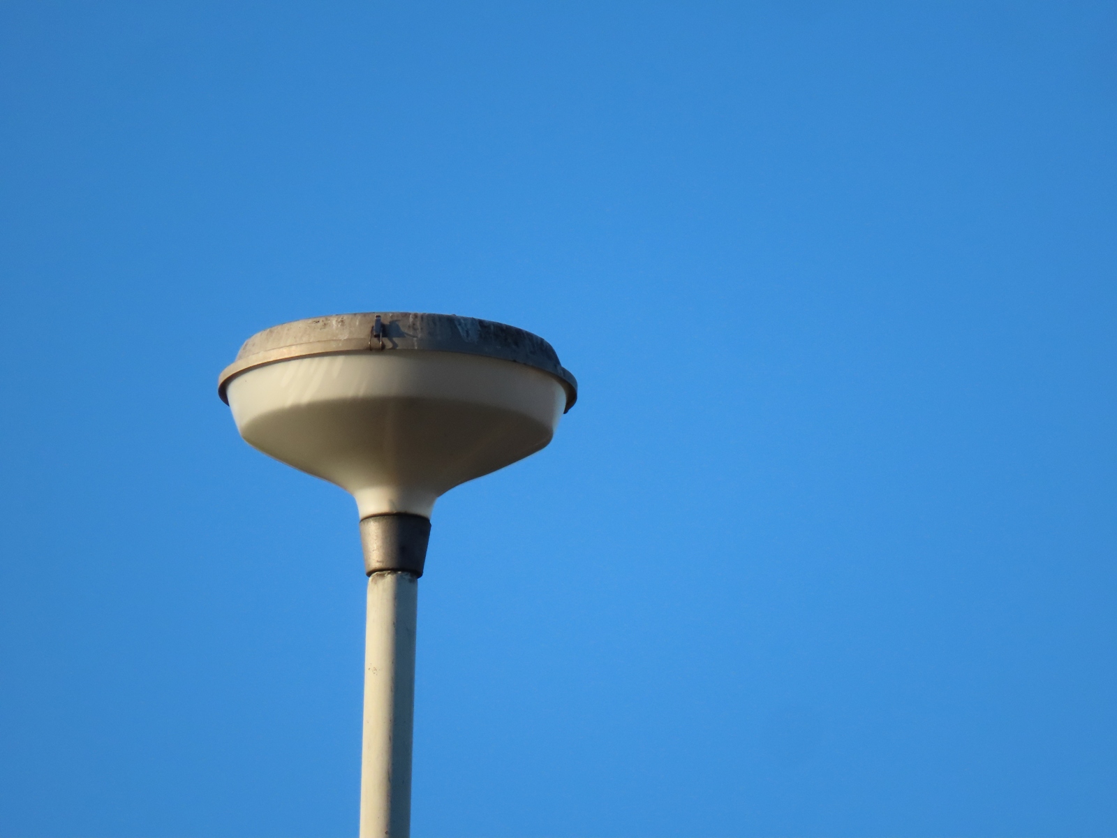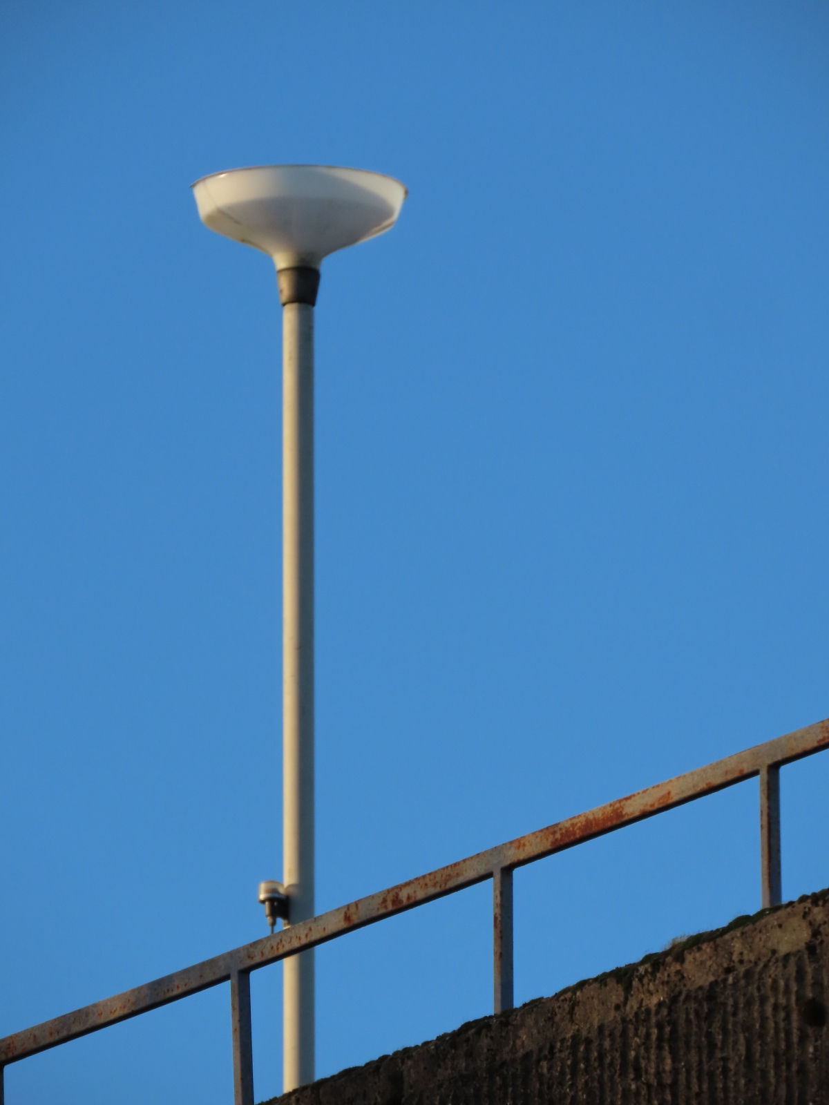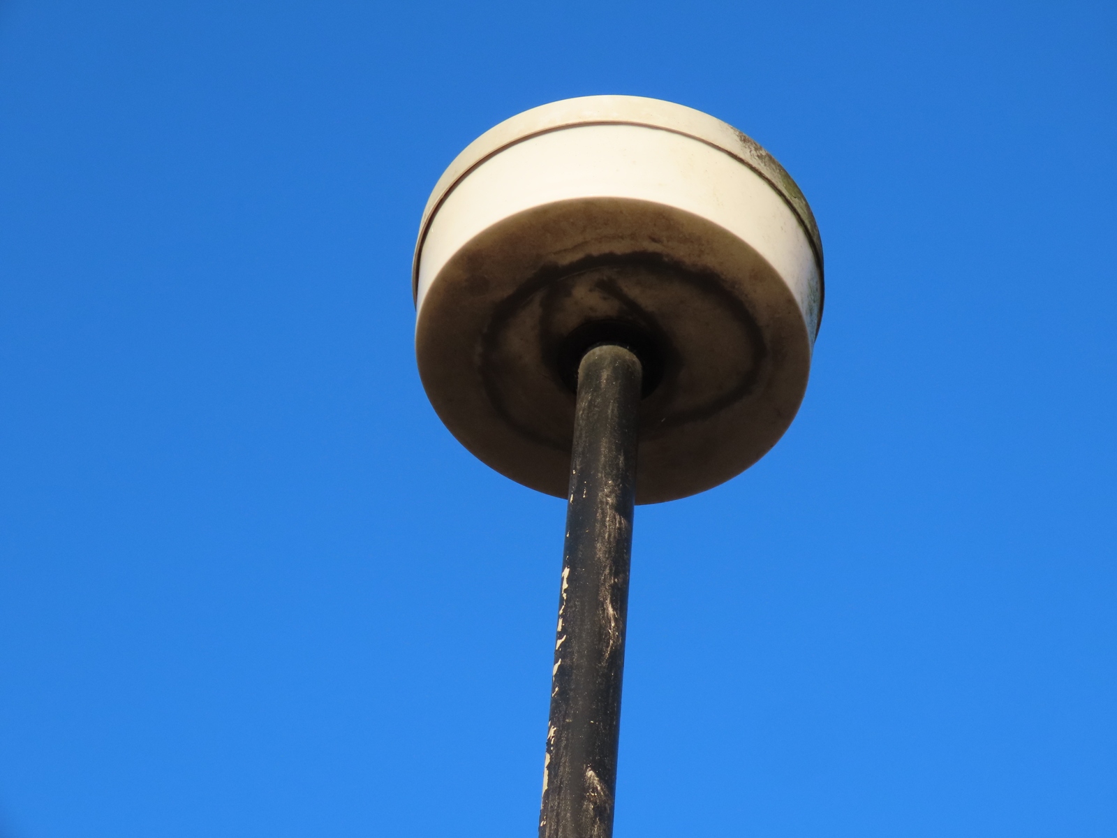 The original black paint applied to the lantern's aluminium canopy has worn heavily, although traces remain visible.