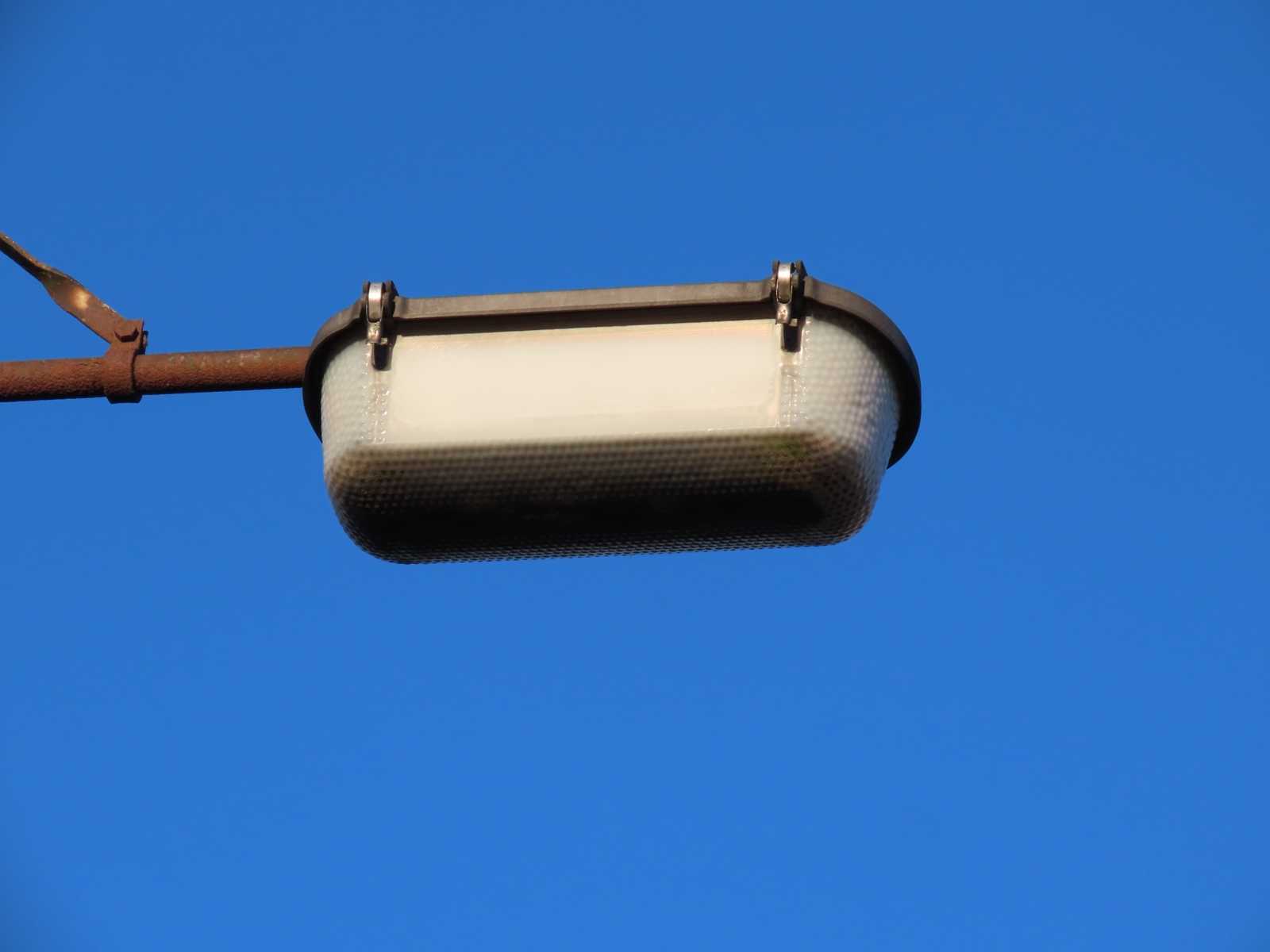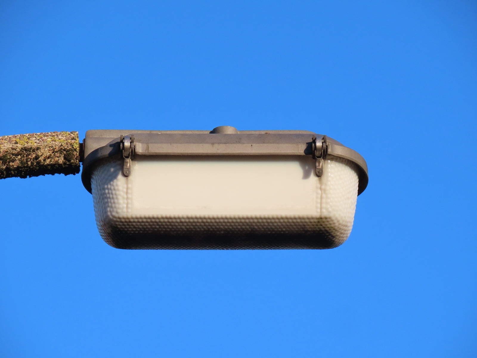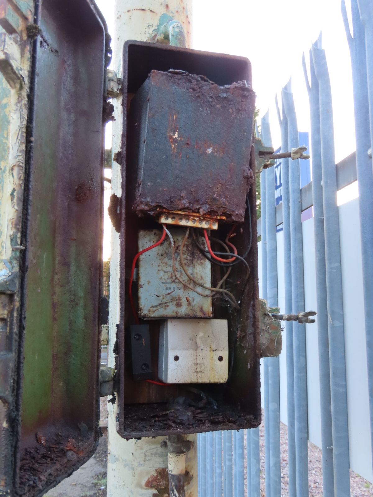 A large tree used to surround this installation, and that may have caused the delicate Perspex bowl to break - either, in windy weather, or as the tree was removed. The smashed GE SOX lamp could be the result of vandalism, however, as the lamp still appeared intact in September 2020, long after the tree had gone, but had become broken by the following August.