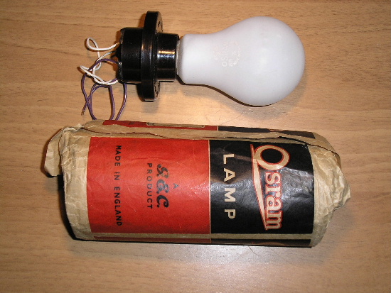 Date code 78 or 81 = June or September 1940, 1948 or 1956. The lamp is shown fitted into an American Bakelite ES lampholder. (Wembley, UK).