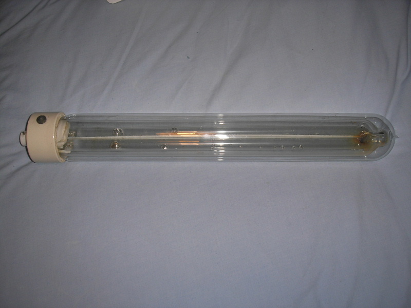 The slight discolouration of the arc tube, and blackening around the electrodes, suggests that the lamp has seen quite a few hours' use. An outer jacket was not included with this arc tube.