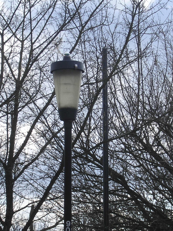 The following photographs were taken on the 4th April 2010 - Easter Sunday. Both outgoing columns supported GEC Z5698U lanterns. The first is recorded as receiving a new photocell (the present Royce Thompson Monostar 1000) and lamp on the 12th April 2005, followed by another new lamp on the 12th January 2006.