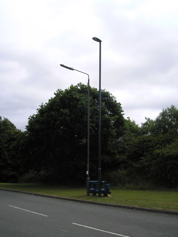 I believe that the lighting installed on the following section of Brierfield Way (between Kipling Drive and Hedingham Way) was slightly older than the lighting already documented was. The evidence for this is a slightly different style of column and bracket, and use of Simplex Aries lanterns instead of GEC Z9538s. The Aries lanterns are group-switched from column 98938 further up the road; hence the lack of photocells on the 'slave' lanterns. I first realised that these lanterns were group-switched (and not just fitted with two-part photocells) when the seven consecutive lanterns on this section of road were all dayburning in 2002/3.