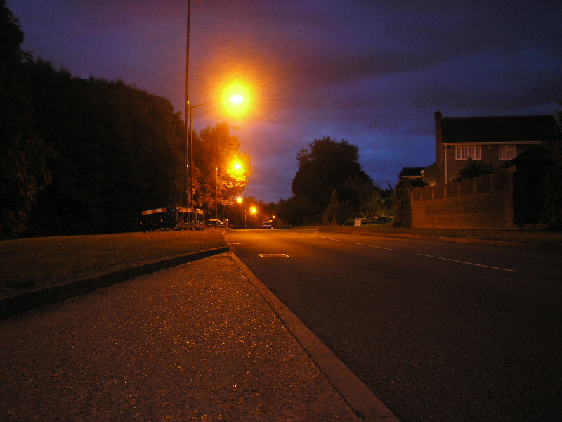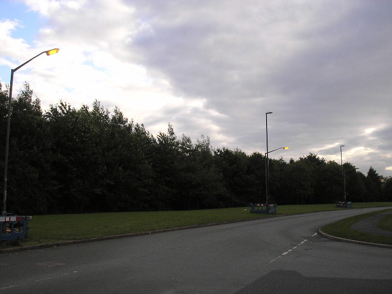 A similar view to that pictured above, but at night and once again taken on the 6th August, when the SOX lighting still guided motorists around the gentle bend at the Kipling Drive junction in much the same way that it had done for thirty years.