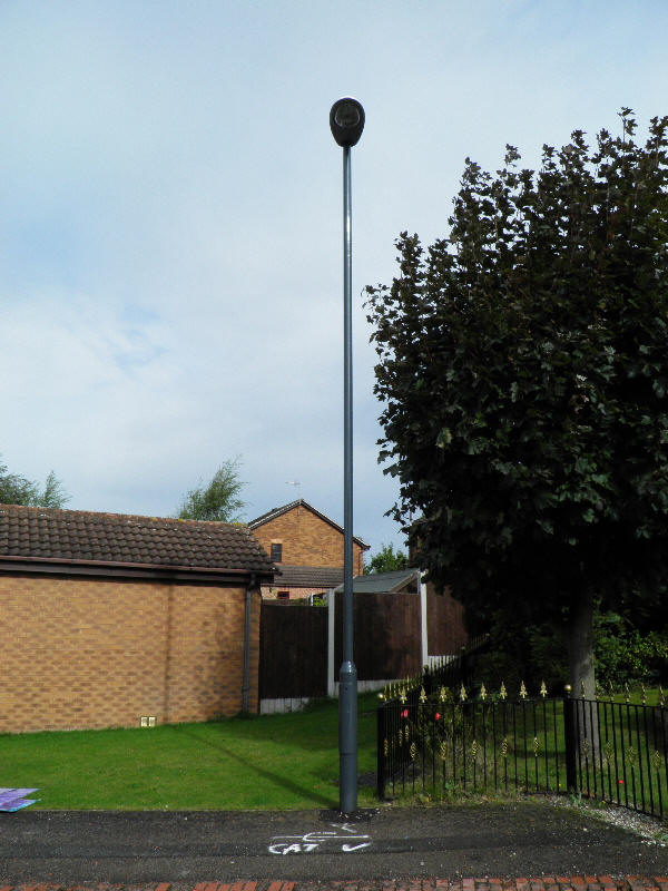 Again, the replacement column was not far away. The 'CATV' marking on the ground in the left-hand photograph shows the location of a cable television...er...cable, in order for the contractor excavating the footway when installing the new supply cable to the column to be aware of the cable's presence during excavation work.