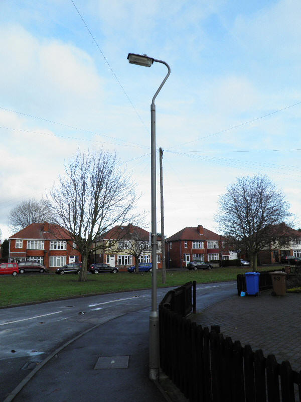 The majority of the outgoing lanterns installed along this road were Thorn Beta 5s. The first column from Chellaston Road (a CU hockey stick; dating from the early-mid 2000s) was fitted with such a lantern.