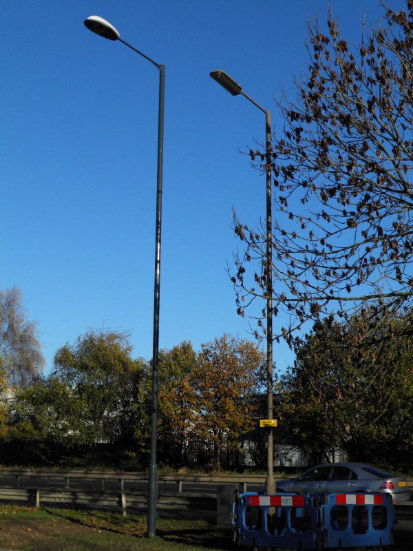 Most of the outgoing columns along here were fitted with Mk I remotely-geared Philips MA 90 90 Watt SOX lanterns that were installed on British Steel 8 m columns.