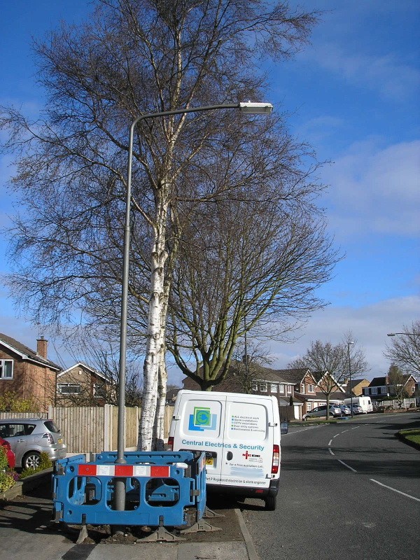 This WRTL Arc lantern (fitted with a 100 Watt SON-T lamp!) was installed in about 2006. The previous column here was knocked over by a wayward vehicle. Incidentally, the replacement Iridium here was the first on the estate to start dayburning.