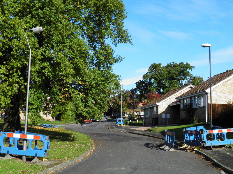 A position adjacent the turning circle on the 'west' cul-de-sac was selected for one of the new columns. Houghton Court is visible in the background of this photograph.