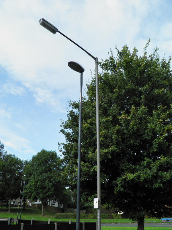 The 55 Watt SOX lanterns installed along here were Thorn Beta 2s; mostly of the 1980s' variant. Whilst the new column on the right appears to be taller than the outgoing column on the left, they are actually both 6 m in height.