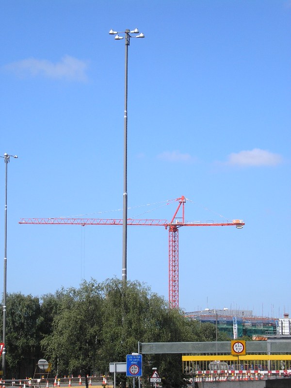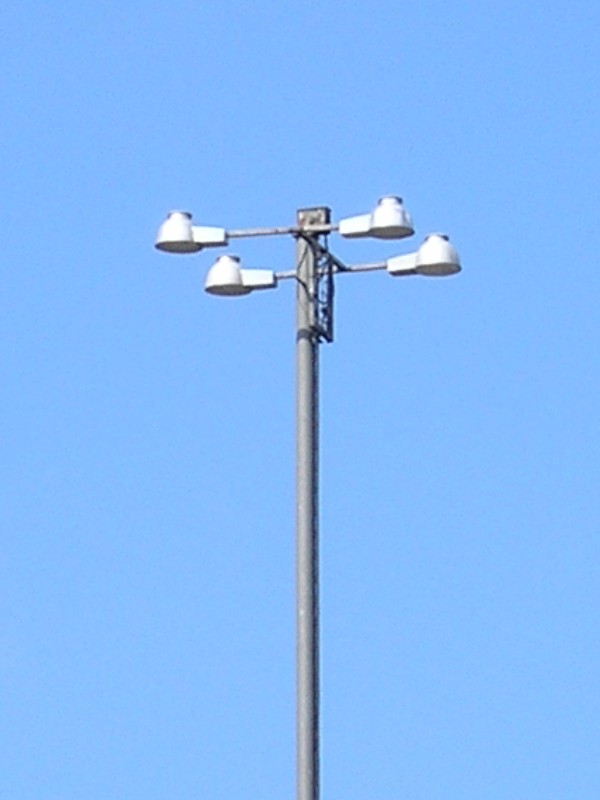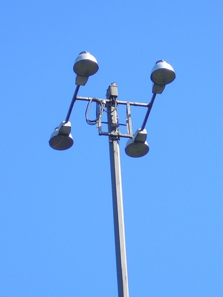 In late 2008 / early 2009 the high masts were all fitted with three Phosco P655 lanterns, located approximately three-fifths of the way up the masts. Seeing as P655s were to be attached to the new masts later in the year, I assume that these were installed by CU Phosco in order to plan the beam angles of the replacement lanterns.
