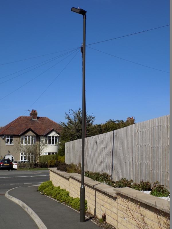 This Highway Diamond is to be found at the start of a housing development that is off Manchester Road in Chapel-en-le-Frith; the other street lights on the development being Highway Diamonds too. The columns are 6 m in height.