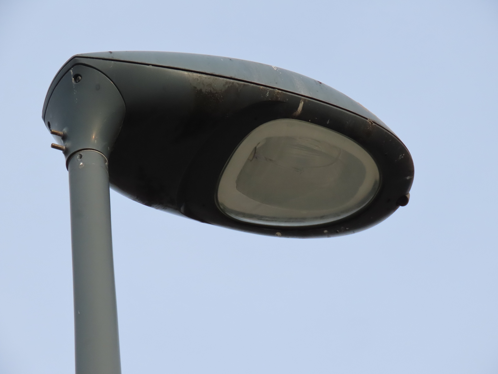 The lantern fitted to the column that is positioned behind the station has a rear shield fitted; presumably, to reduce glare to train drivers, rather than having the potential for the light output to cause potential confusion over a signal aspect colour, as SOX (low pressure sodium) lanterns might.