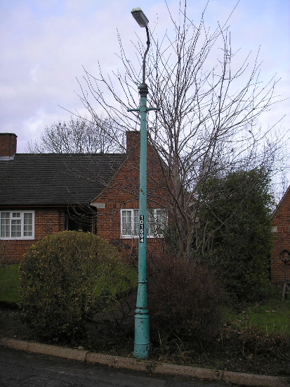 Originally, a small lantern running a mercury vapour lamp; for example, a GEC Z8896 would have been fitted. Judging by how the dirt has accumulated on this lantern, the column appears to have been off-vertical for years.