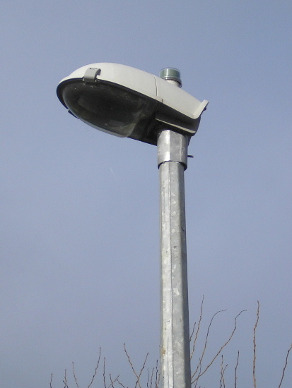 Several side-entry examples exist nearby, however. This lantern has been retro-fitted to a sleeved Stanton 7 concrete column.