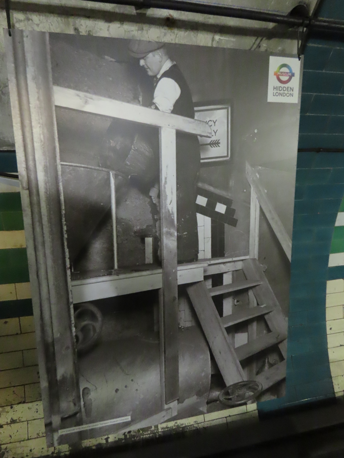 Nearby, one of the two former lift shafts serving the Piccadilly line platforms remained accessible.