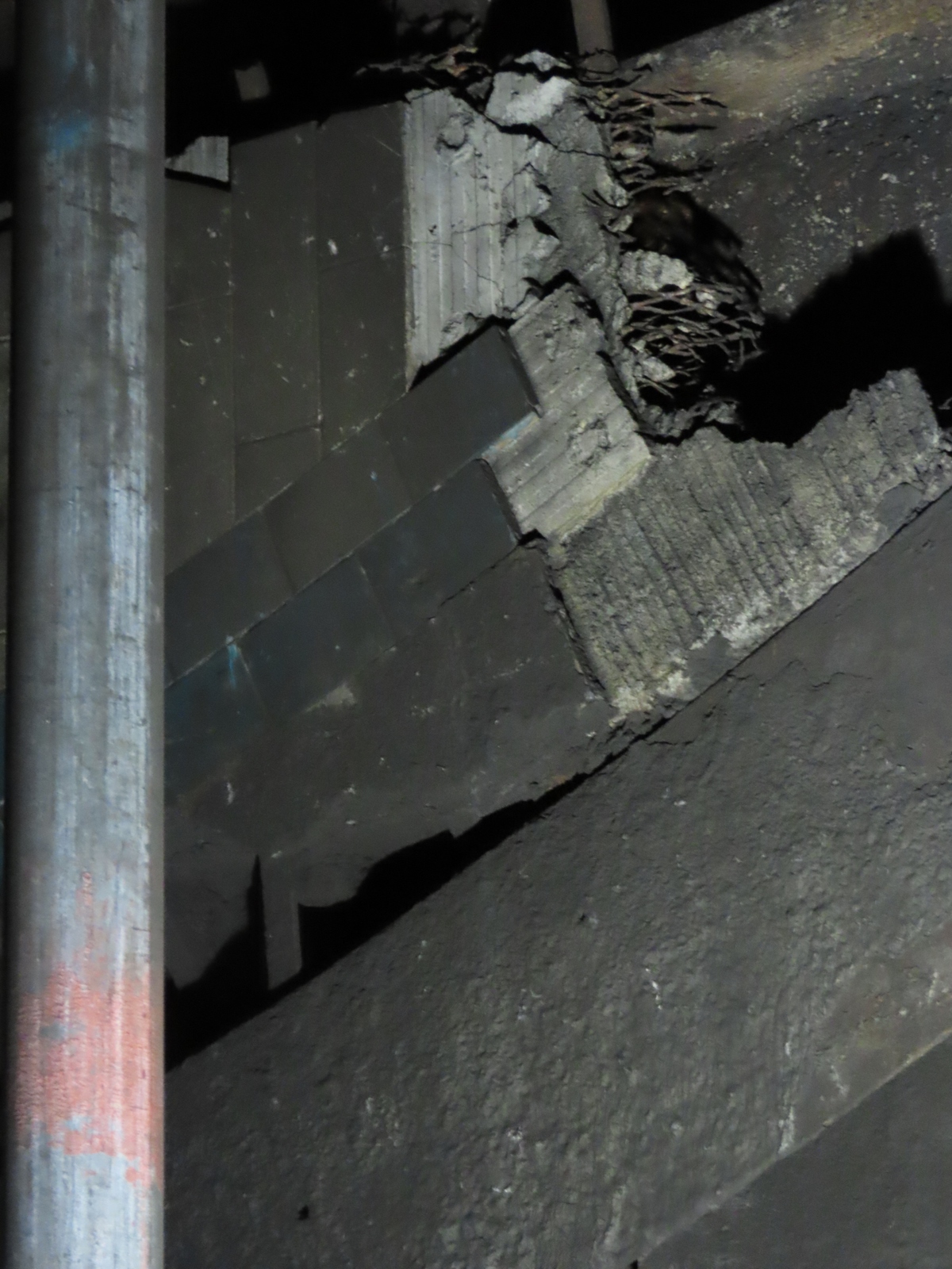 Very little could be seen when looking up into the former emergency spiral staircase shaft.
