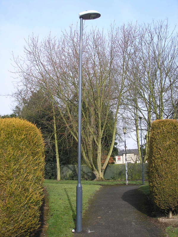 It can just be seen that the Z5698U is not fitted with a photocell; this is due to the outgoing lighting on the footpath being group-switched from a single control point. This column received several reports of vandalism in its final few years of existence, with the control point gaining new photocells on the 4th March, 21st April, and the 9th May 2005, as well as on the 21st December 2006 - I suspect that this might have been due to adjacent tree branches knocking the control cell out of its NEMA socket, rather than actual vandalism occurring. The lantern was last re-lamped on the 4th December 2006.