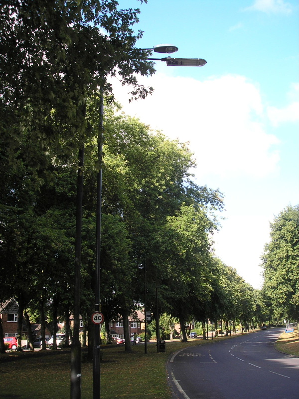 The outgoing lighting on this road largely consisted of various 90 Watt SOX lanterns fitted to 25 ft and 8 m tubular steel columns. The relighting brought an end to almost 80 years of 90 Watt SOX (and its predecessor, 140 Watt SO/H) operation along this road - photographs exist of the road as it appeared in the 1930s and 1950s, and the original lighting along here consisted of 140 Watt open fittings installed in the centre of the carriageway, by means of enormous outreach brackets. This scheme appears to have lasted until the 1960s, when the majority of the columns due for removal under the PFI relighting scheme would have been installed. Broadway is a tree-lined road, and so most of the new 10 m tubular steel columns are fitted with outreach brackets, in an attempt to move the lanterns away from the overhanging tree branches. Incidentally, the new lanterns are the SGS 253 (medium) version of the Philips Iridium, and run Cosmo-White lamps.