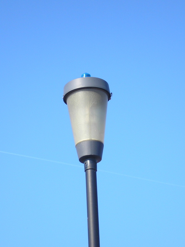 By Wednesday, 21st April 2010, the above outgoing installation had been disconnected from its supply cable, and the new column connected. This was confirmed by the rather empty-looking base of the outgoing column, together with the dayburning Iridium on the new column! The photographs below were taken on the same date. Owing to the Beta 5's known history, I was keen that this lantern should be preserved for posterity, and so, the following day, the lantern was removed from the decommissioned column, and returned to the Balfour Beatty offices until such times as I could collect it. The dayburning Iridium was also rectified at the same time.