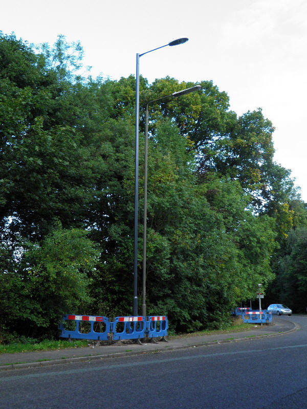 The 'large' version of the Iridium, the SGS 254, is the lantern specified for this scheme. The lanterns all run SON lamps; probably 250 Watt. Brackets are fitted to all columns, despite there only being a few instances where overhanging tree branches could potentially obscure spigot-mounted lanterns. This consistency creates a more uniform appearance to the lighting as the roundabout is traversed.