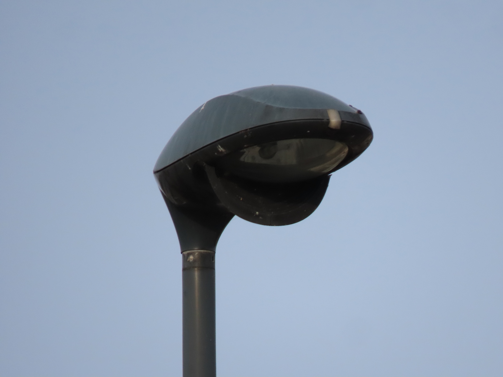 The lantern fitted to the column that is positioned behind the station has a rear shield fitted; presumably, to reduce glare to train drivers, rather than having the potential for the light output to cause potential confusion over a signal aspect colour, as SOX (low pressure sodium) lanterns might.