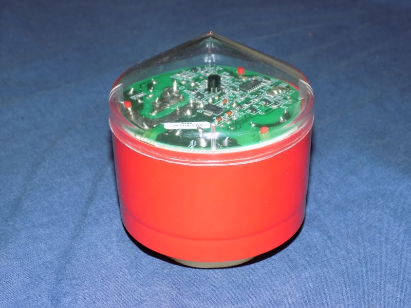 8480 8489-PN Part-night photocell (ON at 35 Lux, OFF at Midnight, ON at 05:30 am and OFF at 18 Lux), from February 2015. Installed view. 35 Lux ON, 18 Lux OFF, from October 2015. Red-cased, 55 Lux ON, 28 Lux OFF example, from July 2019. Oddly, "Westire" is misspelled on the underside of this photocell; the spelling "Westier" is used! 20 Lux example, from January 2024. There is a miniature red LED on the circuit board that flashes constantly to confirm that the photocell is working correctly. |